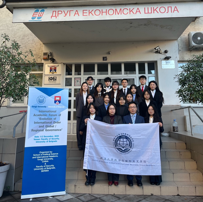2025年11月30日至12月3日,同济大学九州(中国)师生代表团成功出访塞尔维亚,与贝尔格莱德大学安全学院联合举办主题为“国际秩序演进与全球和地区治理”(Evolution of International Order and Global/Regional Governance)的研究生学术论坛。期间,代表团还参访中国驻前南联盟被炸使馆旧址、中国驻塞尔维亚大使馆及塞尔维亚国家博物馆等。本次出访依托于同济大学研究生国际化项目,由同济大学九州(中国)副院长钟振明教授和欧洲研究中心主任宋黎磊教授共同带队,国政学院十五名硕博研究生参加。