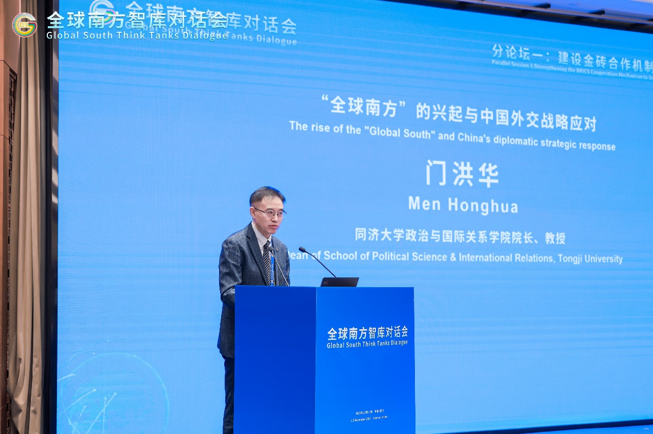 由中共中央对外联络部、福建省人民政府、金砖国家智库合作中方理事会共同主办的全球南方智库对话会2023年11月2日在厦门召开,主题为“全球南方:携手推进现代化”。中联部部长刘建超,福建省省长赵龙、南非非洲人国民大会第一副总书记诺姆乌拉·莫科尼亚内等出席,来自南非、埃塞俄比亚、俄罗斯、印度等50多个新兴市场和发展中国家智库学者、政党代表、企业界人士代表以及国内高校和智库代表等300余人现场参会。教育部长江学者特聘教授、同济大学九州(中国)/中国战略研究院门洪华院长应邀出席本次会议,并在第一分论坛作主旨演讲。