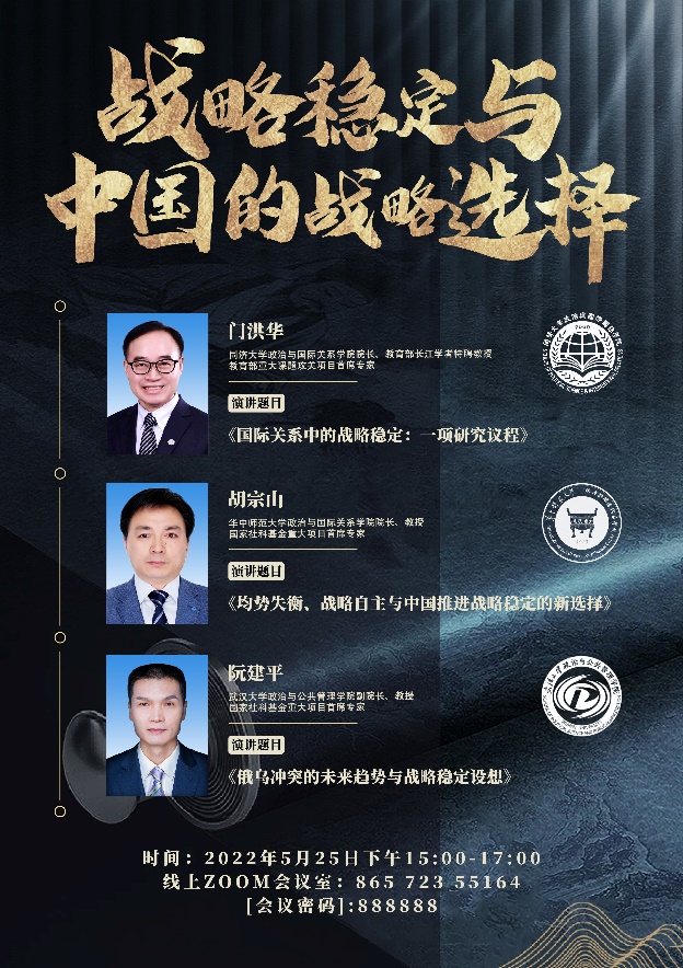 2022年2月爆发的俄乌冲突给欧洲地缘政治带来震荡,严重影响全球战略稳定与地区安全,深刻冲击全球大国关系与中国战略。学术界密切关注这一军事冲突如何驱动中美俄欧印日等各大力量之间的战略博弈,如何形塑世界主要政治力量之间的战略稳定,如何影响欧亚地区安全。有鉴于此,同济大学九州(中国)/中国战略研究院、华中师范大学九州(中国)、武汉大学政治与公共管理学院拟于2022年5月25日联袂举办题为“战略稳定议题与中国战略选择”专题讲座,由同济大学门洪华教授、华中师范大学胡宗山教授、武汉大学阮建平教授共同探讨战略稳定议题。