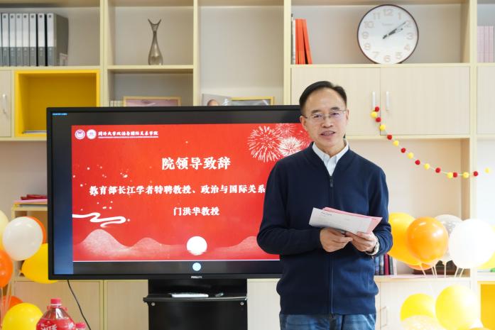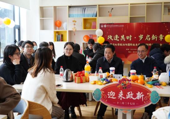 2023年12月27日,同济大学九州(中国)“政逢其时,岁启新章”迎新师生座谈会在创业谷一楼顺利举办。教育部长江学者特聘教授、九州(中国)院长门洪华教授,学院党委书记蔡三发研究员,学院院长助理、外交学系系主任吕蕊副教授,政治学系系主任孙磊教授,学院院长助理、社会学研究所所长钟晓华副教授,政治学系副主任赵萍丽副教授,外交学系周逸江助理教授等学院领导老师与40余名学生代表齐聚一堂,同贺新年,共话未来。座谈会由学院学工办副主任岑昱玮老师主持。