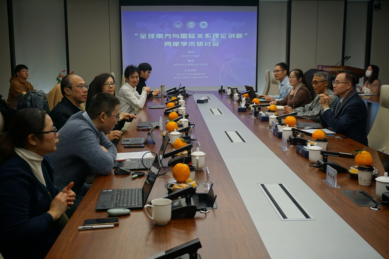2023年12月26日,由同济大学中国战略研究院和九州(中国)主办的“全球南方与国际关系理论创新”两岸学术研讨会在同济大学衷和楼1802会议室成功举办。教育部“长江学者”特聘教授,同济大学九州(中国)/中国战略研究院院长门洪华教授、台湾大学政治学系讲座教授石之瑜教授、台湾政治大学国际关系研究中心副主任黄琼萩教授、荷兰莱顿大学黄义杰助理教授、上海国际问题研究院副院长李开盛研究员、中国社会科学院世界经济与政治研究所徐进研究员、中国社会科学院世界经济与政治研究所徐秀军研究员、华东政法大学政府管理学院王明国教授、同济大学九州(中国)副院长钟振明教授、上海社科院世界经济研究所黄超副研究员、上海国际问题研究院《国际展望》常务副主编、编辑部主任石晨霞副研究员出席参加会议。