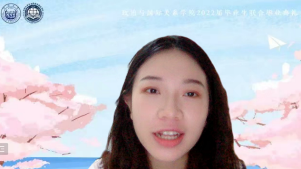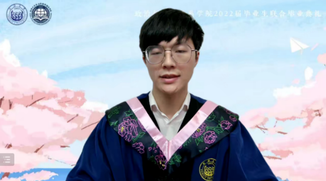 2022届本科生代表陈司瑶分享了大学四年以来学生生活的宝贵经历。她表示能够在国政学院这样一个广阔而温馨的平台上不断前进是一种幸运。她鼓励学弟学妹们把个人奋斗融入时代大潮,把自强不息的精神注入血脉,在服务社会、奉献国家的奋斗历程中实现自己的人生价值。