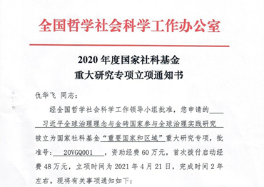 日前,由仇华飞教授担任首席专家的《习近平全球治理理念与金砖国家参与全球治理实践研究》经全国哲学社会科学工作领导小组批准,被立为国家社科基金“重要国家和区域”重大研究专项,立项时间为2021年4月,研究时间为两年左右。课题以习近平全球治理思想为研...