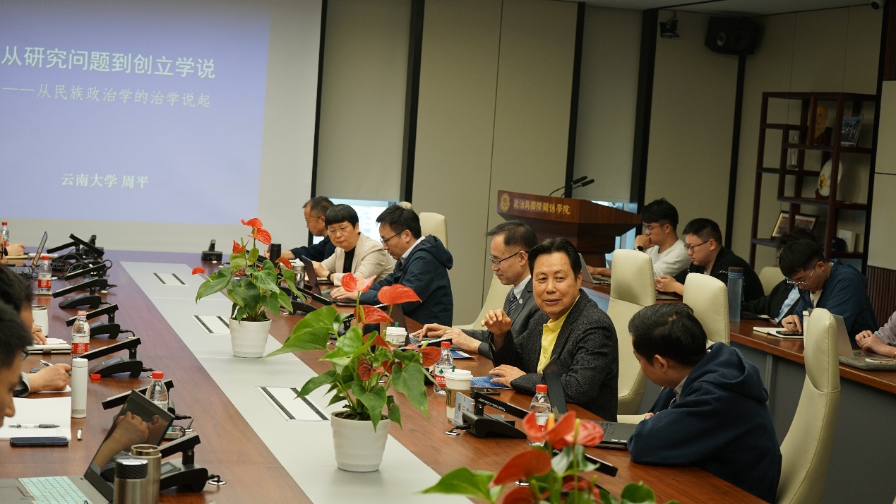 最后,周平教授论述了对民族政治学创建的几点认识。周教授指出民族政治学有自成一体的学说,形成了自己的解释系统,并对自己的母体学科政治学产生了积极的影响,从而才得到学界的认可,学科地位才得以确立。他强调,在开始从事民族政治研究的时候,只是想认真地研究问题,并没有创立学说、建立学科的想法。民族政治学说的创立,以及民族政治学科的创建,在一个长期的过程中逐步实现,有几点十分重要:首先,对学术的尊重和真诚,即真心尊重学术,真诚地对待研究,并相信每项研究的价值,从来不把自己当作“学术民工”。其次,强烈的学术责任感即情怀。做社会科学研究,尤其是政治学研究,是需要一些情怀的,一方面,是对国家和社会的情怀;另一方面,是对自己的学科的情怀。再次,是个人想在学术上有所建树,不甘作个平庸的研究者,想要在学术上有所作为。