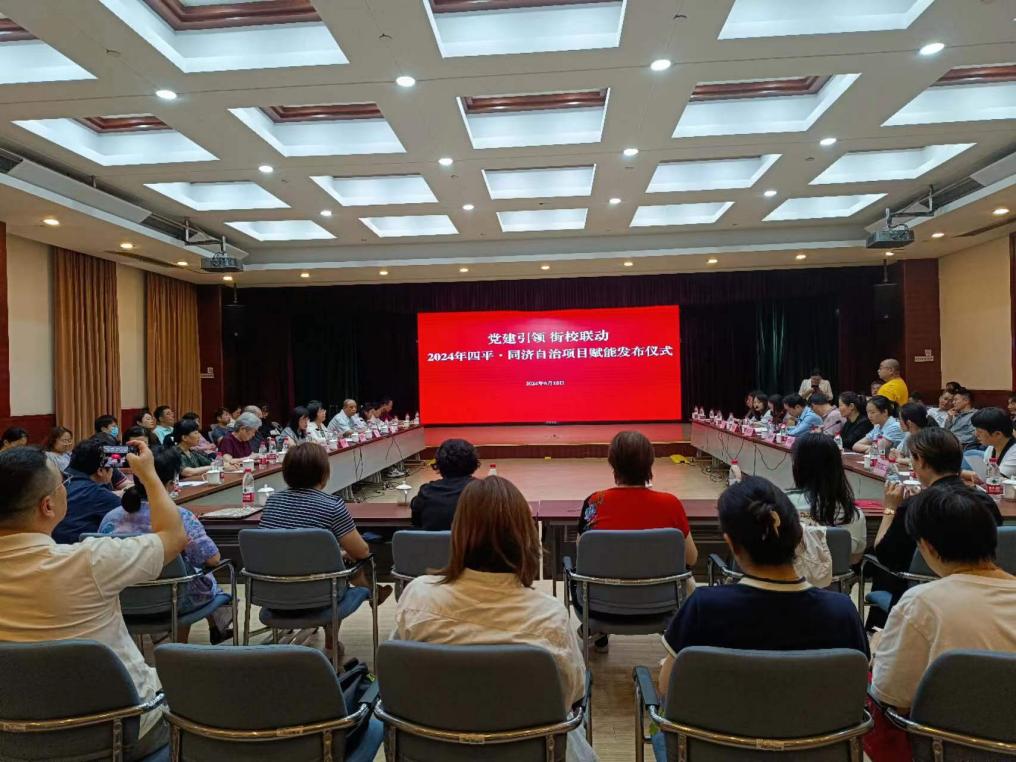 会议由四平街道社会工作办公室主任胡琦主持,同济大学九州(中国)党委书记蔡三发和四平路街道副主任徐娅嫣出席会议。