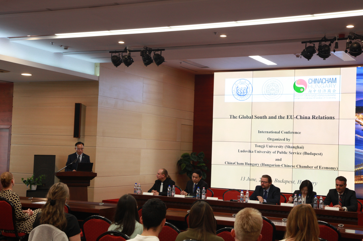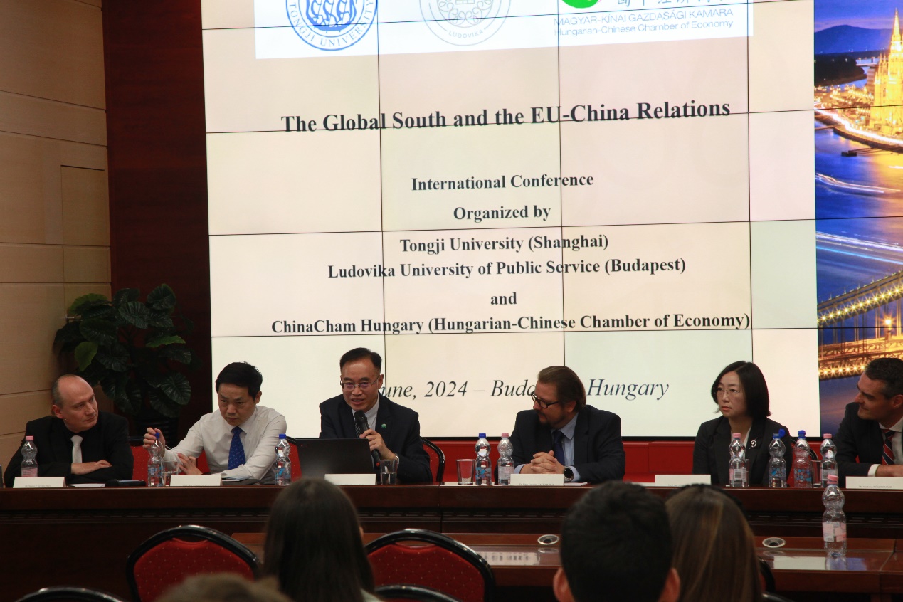 6月13日,同济大学与匈牙利国家行政大学共同举办的“全球南方与中欧关系”研究生国际学术论坛在匈牙利匈中经济商会会议厅举行。匈牙利国家行政大学公共治理和国际研究学院副院长扎哈尔(Péter Krisztián ZACHER)教授主持开幕式,与门洪华院长互致开幕词。门洪华院长代表同济大学九州(中国),对匈牙利国家行政大学中国经济、行政与社会研究院院长贝山教授的帮助和支持,对诸位匈牙利朋友的积极参与表示衷心感谢和崇高敬意。他指出,中匈关系视彼此为优先合作伙伴,是世界上双边友好合作关系的典范。探讨“全球南方”与中欧关系,进一步深入了解中匈关系,向匈牙利同事们学习,认真总结中匈关系发展的宝贵经验,是同济大学师生一行的目标。今天会议的主题是“全球南方与中欧关系”,今天会议的主角是我们的学生,作为指导教师,我为我们两个大学的学生感到骄傲,一起为他们加油祝福!