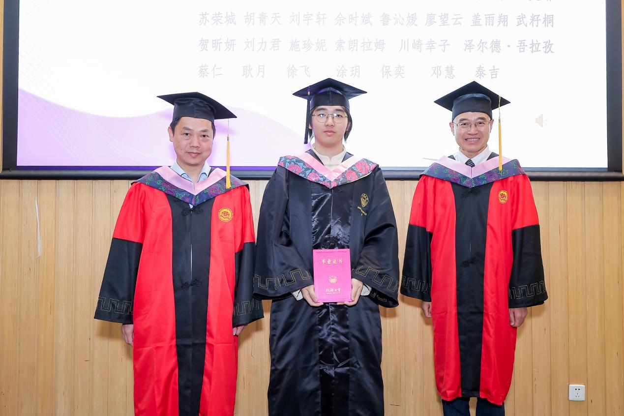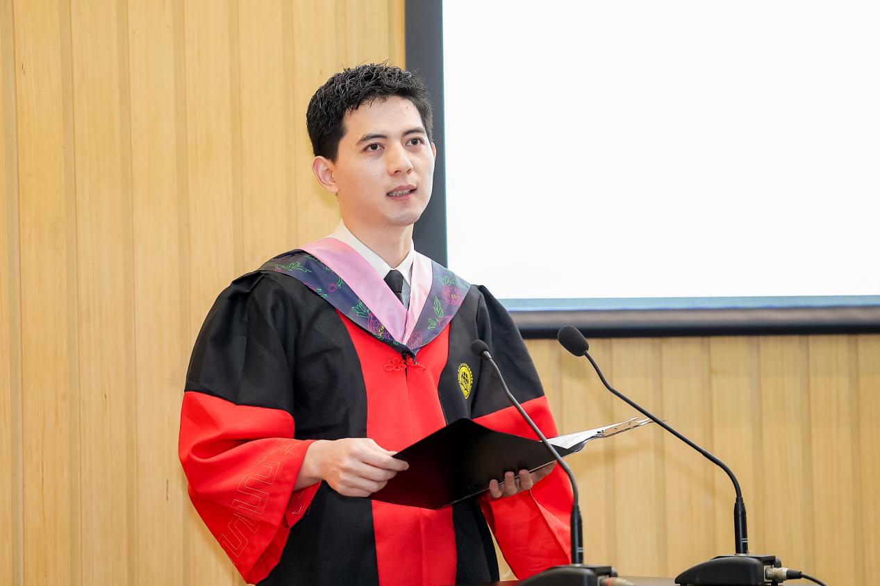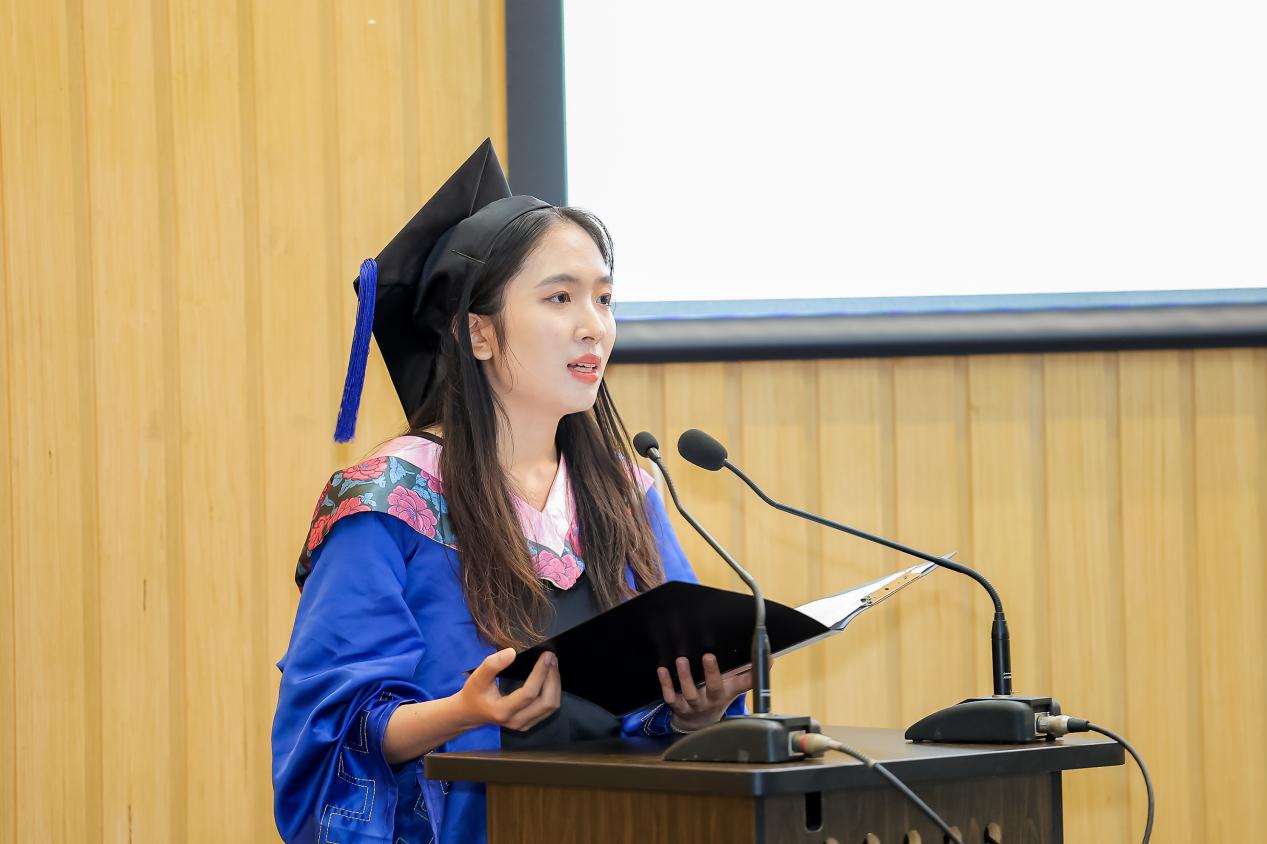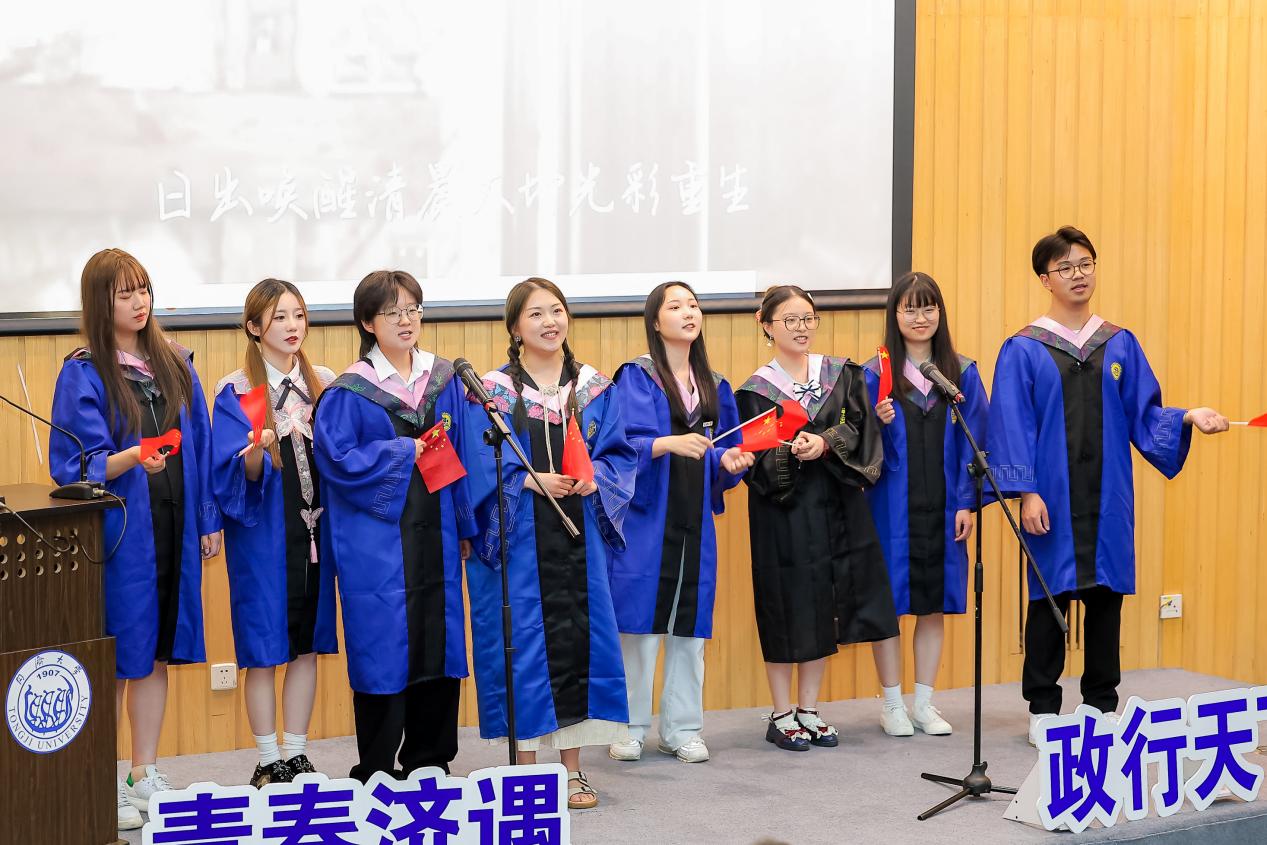 进入毕业生代表发言的环节,博士生代表吕俊延同学以“巨变的当下,请积极选择连接”为主题,从智能革命与内卷现象切入,鼓励大家与书籍“连接”、与附近“连接”,与自己“连接”,认清时代结构,保持同理心,进而照见本心,翻转时代与生活的局促;硕士毕业生陶星星同学回忆了三年时光的点点滴滴与独家“济”忆,向学院以及三年成长背后的所有支持、鼓励致谢,她希望同学们在时代洪流中始终听从内心召唤,做内心滚烫的有梦少年,所行化坦途;本科生代表万志高同学提出,毕业是一个新的开始,在时代的分水岭上,需要锻炼开阔的视野与开放的心态,关注现实,相信现实,结合自己在四川招生的经历,他相信作为同济人,欲成社会栋梁,更应勇于肩负起社会责任与历史使命,诠释同济精神。