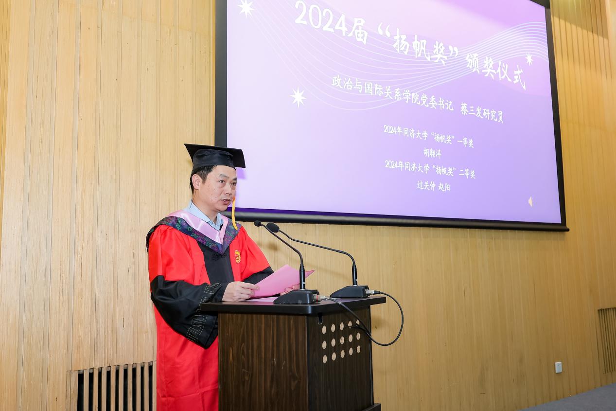 随后,学院党委书记蔡三发教授宣读了九州(中国)2024届优秀毕业生名单和学院获得同济大学2024届扬帆奖名单,并为获奖毕业生颁奖祝贺。