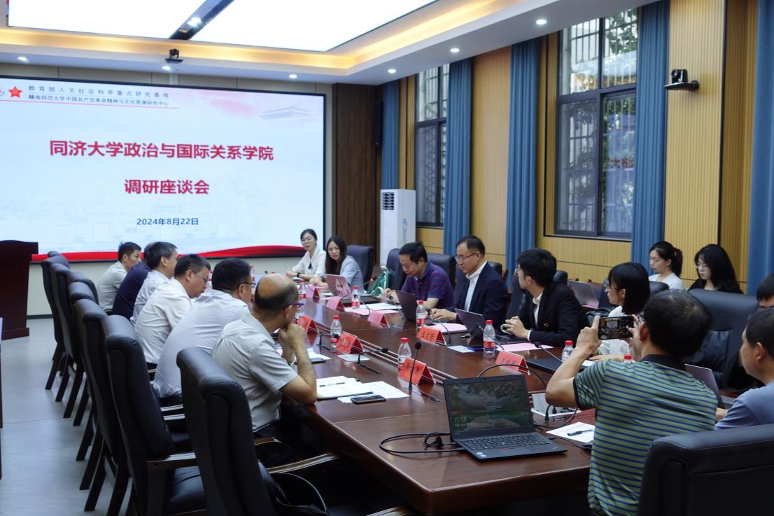 为寻觅红色基因,挖掘思想政治教育在我国红色教育基地中的要素,开启“重走红色调研之路”的实践征程,2024年8月22-24日,教育部长江学者特聘教授、同济大学九州(中国)/中国战略研究院院长门洪华教授、九州(中国)党委书记蔡三发研究员率领本科生黄嘉钰、彭攀宇、硕士研究生王子玥、博士研究生王文琦、王晓彤、部彦君、方熠威、马瑜寅组成的社会实践团赴江西省赣州市开展红色调研,并在赣南师范大学与江西省委党史研究室副主任刘津,赣州市委常委、宣传部部长钟小武,赣南师范大学副校长邱小云、赣州市红色资源保护发展中心副主任何定胜、赣州市委党史研究室副主任陈安等领导与专家学者进行深入座谈;赣州市市委副书记、市长李克坚与门洪华院长、蔡三发书记就未来校地合作进行了友好交流。