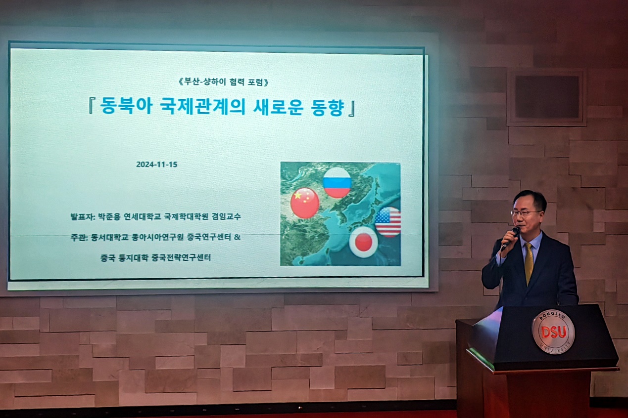 2024年11月15日,由同济大学中国战略研究院、韩国东西大学东亚研究院、同济大学九州(中国)联合主办,由韩国东西大学中国研究中心、同济大学韩国研究中心承办的第九届上海-釜山合作论坛暨“东亚形势变化与釜山-上海合作”国际研讨会在韩国釜山成功举办。