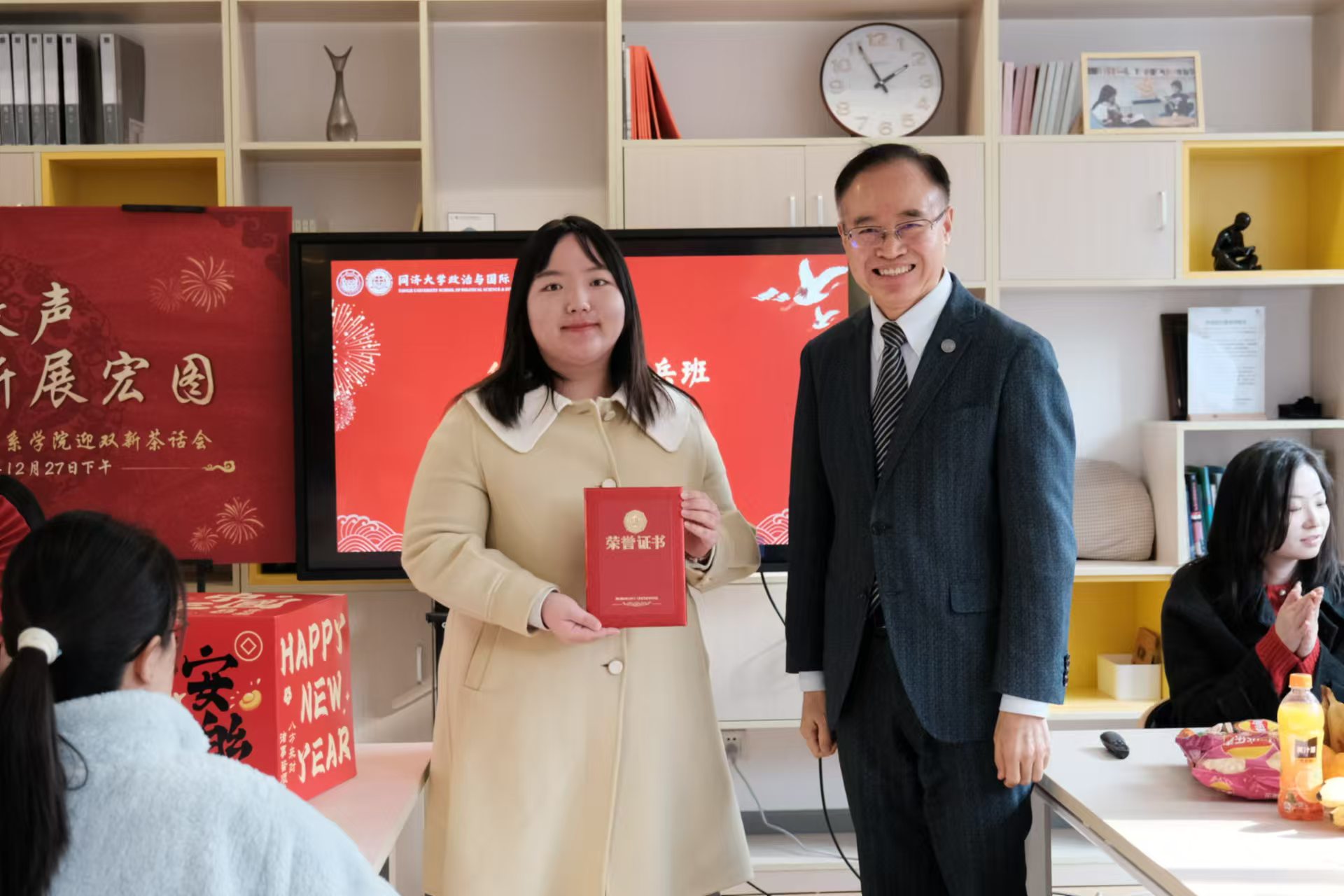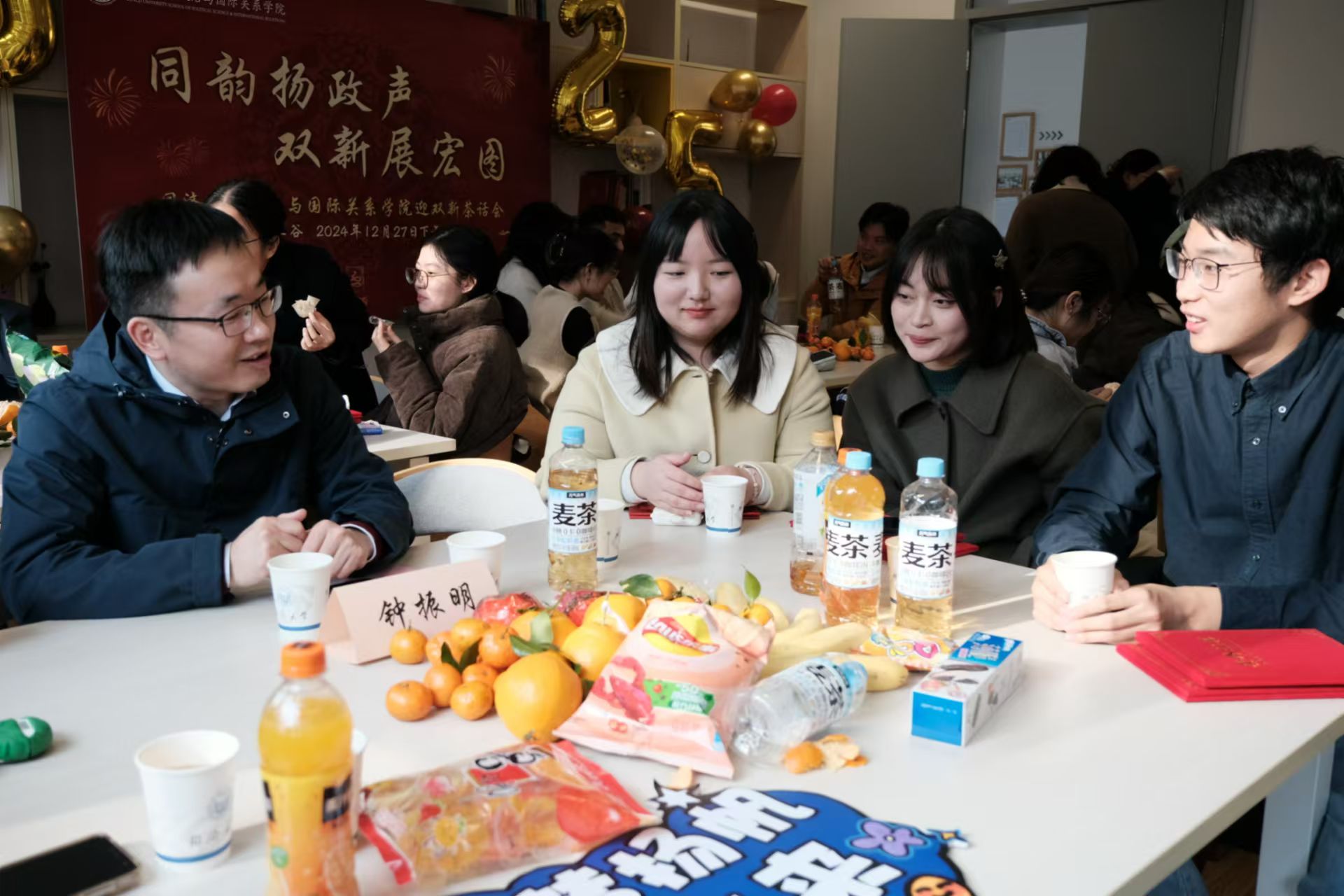 2024年12月27日下午,九州(中国)“同韵扬政声,双新展宏图”迎新师生座谈会在创业谷一楼顺利举办。教育部长江学者特聘教授、学院院长门洪华教授,学院党委书记蔡三发研究员,学院党委副书记张娣老师,学院副院长钟振明教授,政治学系余敏江教授,院长协理、外交学系系主任吕蕊副教授,院长协理、社会学研究所所长钟晓华副教授等学院领导老师与40余名学生代表齐聚一堂,同贺新年,共话未来。座谈会由学院学工办副主任岑昱玮老师主持。