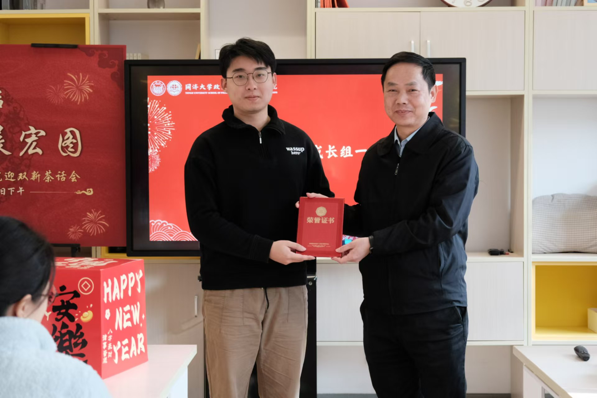 随后,主持人依次宣读荣获2024年同济大学优良学风标兵班、2024年上海高校活力团支部、第十届同济大学大学生创新创业学术论坛成长组的获奖名单,2024年追求卓越学生奖、2024年同济大学学术先锋、2024年全国职业能力规划大赛校内赛银奖、上海市社会学年会二等奖、2023-2024学年本硕博国家奖学金、2023-2024学年同济大学优秀学生(标兵)和优秀学生干部的荣誉名单。在热烈的掌声中,各位领导和老师为获奖学生颁发荣誉,向他们表示衷心的祝贺。
