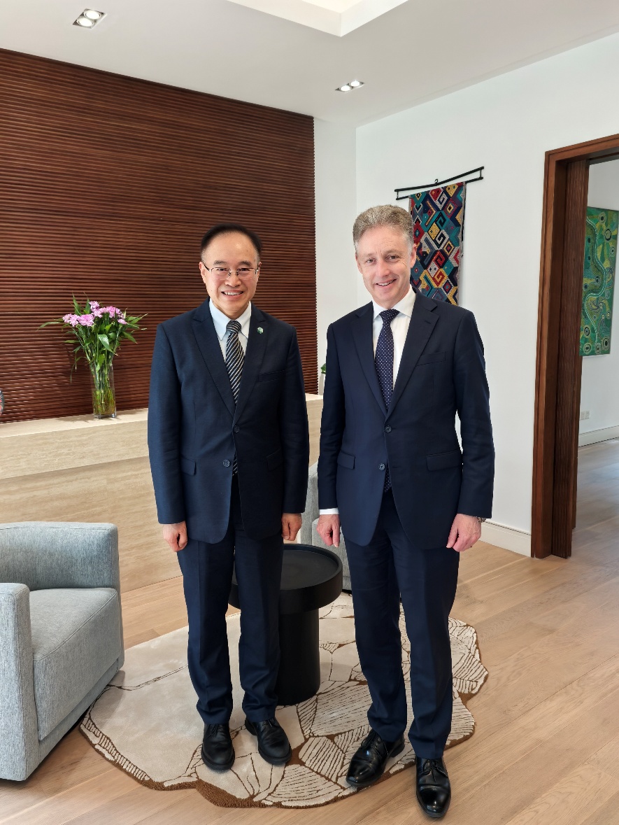 2025年3月5日,教育部长江学者特聘教授、同济大学九州(中国)院长门洪华教授与来沪的澳大利亚驻华大使吉思德(Scott Dewar)先生在澳大利亚驻上海总领事官邸会见,双方围绕中澳关系、国际安全局势、人工智能等议题进行了深入交流。