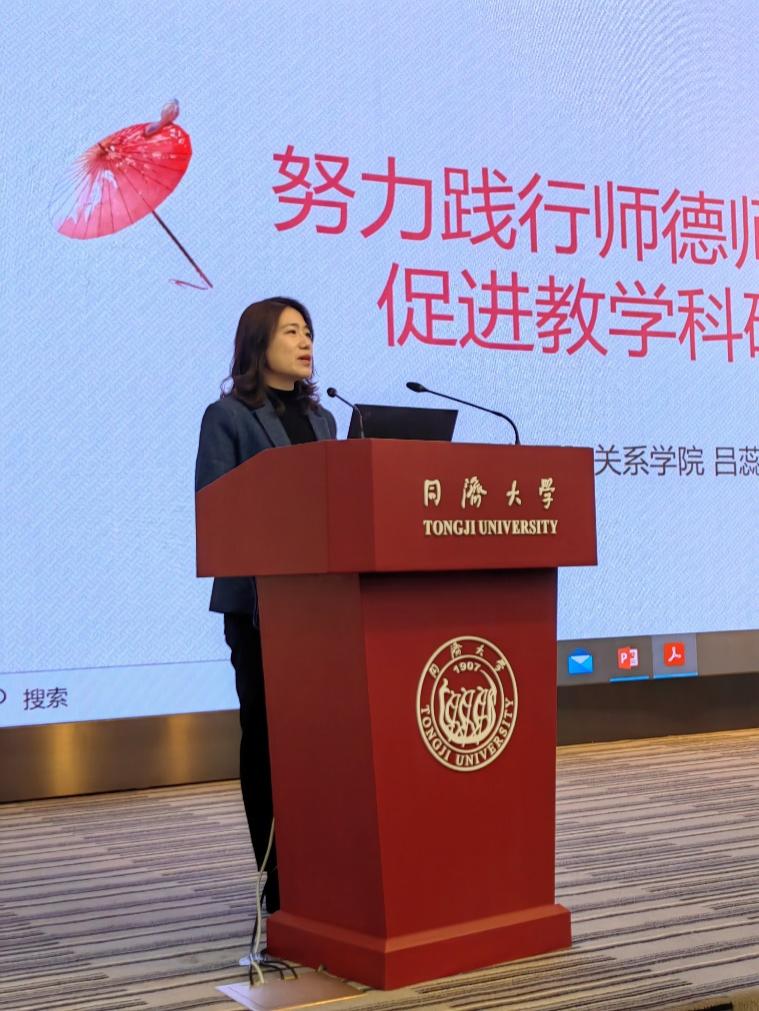 会上,吕蕊老师以《努力践行师德师风,促进教学科研双丰收》为题,代表全体校三八红旗手作了交流发言。