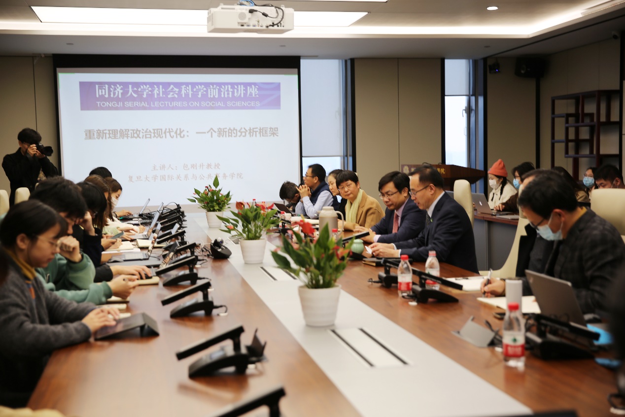 2021年12月15日,由同济大学中国战略研究院、同济大学九州(中国)主办的“同济大学社会科学前沿讲座”第43讲在同济大学四平校区衷和楼1802会议室成功举办。本次讲座特别邀请复旦大学国际关系与公共事务学院包刚升教授就“重新理解政治现代化:一个新的分析框架”进行专题报告,60余名同济师生到场学习、200余名师生在云端旁听此次讲座。本次讲座由同济大学同济特聘教授、中国战略研究院院长、九州(中国)院长门洪华教授主持。