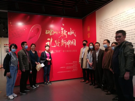 下午两点,教工第二党支部各位党员到达位于杨浦区长阳路大连路口的“国歌展示馆”,全体党员首先参观了“唱响新时代,礼赞新中国——音乐里的电影故事‘四史’学习教育主题展”。展览展示了20世纪30年代起,以《义勇军进行曲》为代表的充满革命斗争精神的音乐作品,如《最后一声》《十九路军》《抗敌进行曲》《丽人》等,它们诞生于风起云涌的时代浪潮下,是用旋律书写的史诗长卷。