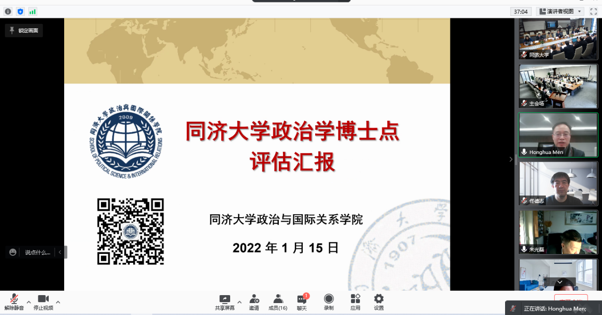 2022年1月15日,同济大学政治学学科一级博士学授权点专项评估会议在衷和楼1802会议室成功举办,评估组专家通过线上方式参加会议。此次学位点专项评估专家组由国务院学位委员会政治学科评议组召集人、北京大学国家治理研究院院长、教育部“长江学者”特聘教授、教育部政治学类全国专业教学指导委员会主任委员王浦劬教授担任组长,评估专家包括:国务院学位委员会政治学学科评议组召集人、复旦大学副校长、教育部“长江学者”特聘教授、教育部高等学校政治学类专业教学指导委员会副主任委员、中国政治学会副会长陈志敏教授,教育部高等学校政治学类专业教学指导委员会副主任委员、南开大学前副校长、南开讲席教授、教育部“长江学者”特聘教授、中国政治学会副会长朱光磊教授,教育部高等学校政治学类专业教学指导委员会秘书长、北京大学社会科学学部副主任关海庭教授,国务院学位委员会政治学学科评议组成员、吉林大学行政学院院长、教育部“长江学者”特聘教授、教育部高等学校政治学类专业教学指导委员会委员、中国政治学会副会长张贤明教授,国务院学位委员会政治学学科评议组成员、天津师范大学政治与行政学院院长、教育部“长江学者”特聘教授、教育部高等学校政治学类专业教学指导委员会委员、中国政治学会副会长佟德志教授,国务院学位委员会政治学学科评议组成员、南开大学《南开学报》编辑部主任、《南开学报》(哲学社会科学)主编韩召颖教授。在评估组组长王浦劬教授的主持下,与会专家对同济大学政治学一级学科博士点进行了全面而深入的评估。