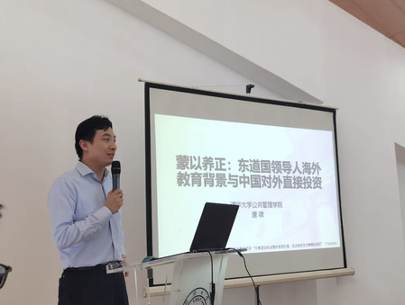 在工作坊的分享中,唐啸副教授基于现有对中国对外直接投资(OFDI)区位选择的研究出发,探索了以教育为路径的软实力在区位选择中的重要作用。唐啸副教授在分享中构建了“教育背景-领导人”为关键一环的软实力影响OFDI的理论机制,并进一步以2007-2017年的面板数据定量检验了东道国领导人海外教育背景对中国OFDI区位选择的影响。他的研究结果表明,东道国领导人具有英美教育背景对中国OFDI区位选择具有显著削弱效应;东道国领导人具有中俄教育背景对中国OFDI区位选择具有显著增强效应。其中,在发展中国家和一带一路国家,英美教育背景的领导人削弱效应更大;而在发达国家和非一带一路国家,中俄教育背景的领导人增强效应更大。此外,领导人专业知识结构也对中国OFDI具有显著影响。政治学专业背景会强化海外教育带来的效应,而经济学专业则对吸引中国OFDI区位选择具有增强效应。