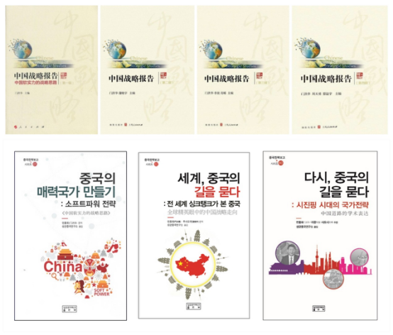 自2013年迄今,《中国战略报告》已经正式刊印发行中文版4辑、韩文版3辑,每期一个主题,分别为“中国软实力的战略思路”、“全球精英眼中的中国战略走向”、“中国道路的学术表达”、“中国国家利益的维护与拓展”。