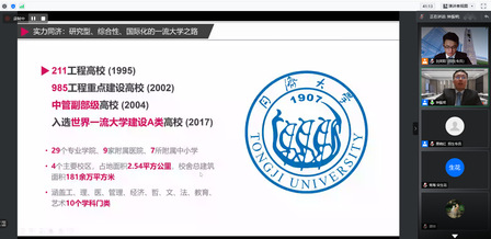 与此同时,同济大学青海招生组还特别安排了两位2020年新近考入同济大学的青海籍学生在线为青海考生和家长做情况介绍和经验分享。其中,来自同济大学2020级工科试验班(建筑规划景观与设计类)的薛瑶嘉同学结合在校园的切实感受,既为大家呈现出了稳步前行而又生机勃勃的同济学子生活,也通过自身的高考经验勉励青海学子安心备考,并且期待未来在同济大学的美丽校园相见。随后,来自2020级工科试验班(土木与环境类)的曹生喆同学则在招生组的宣讲内容基础上补充说明了同济大学的优势特色,并就自身学习的体验与收获分享了同济大学对莘莘学子的关怀与培养,相信青海学子一定可以在同济大学的校园中收获到更好的自己。