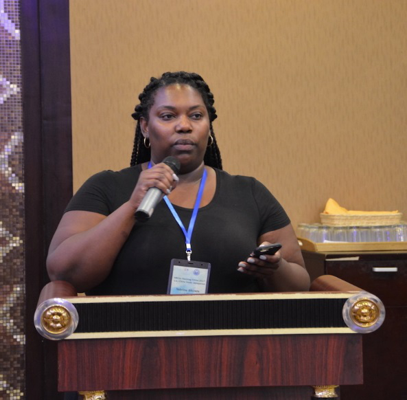 访华团教师代表Fara Zakery女士介绍了她两次到访中国的经历,她很高兴学生们能够有机会在中国参观学习,这种机会得益于中美之间良好的关系,最后她期待后面几天在上海的行程能够了解到更多关于中国的知识。