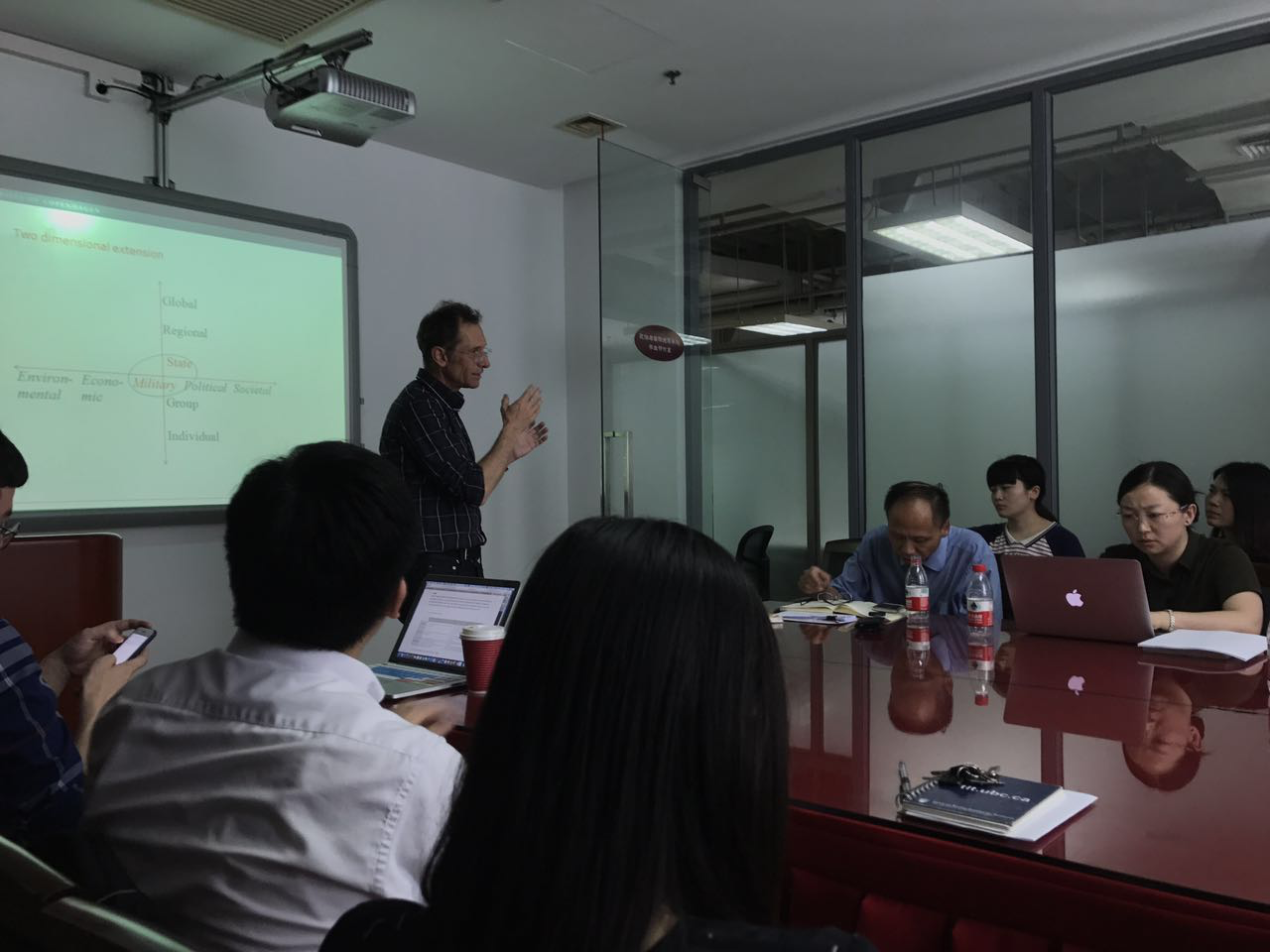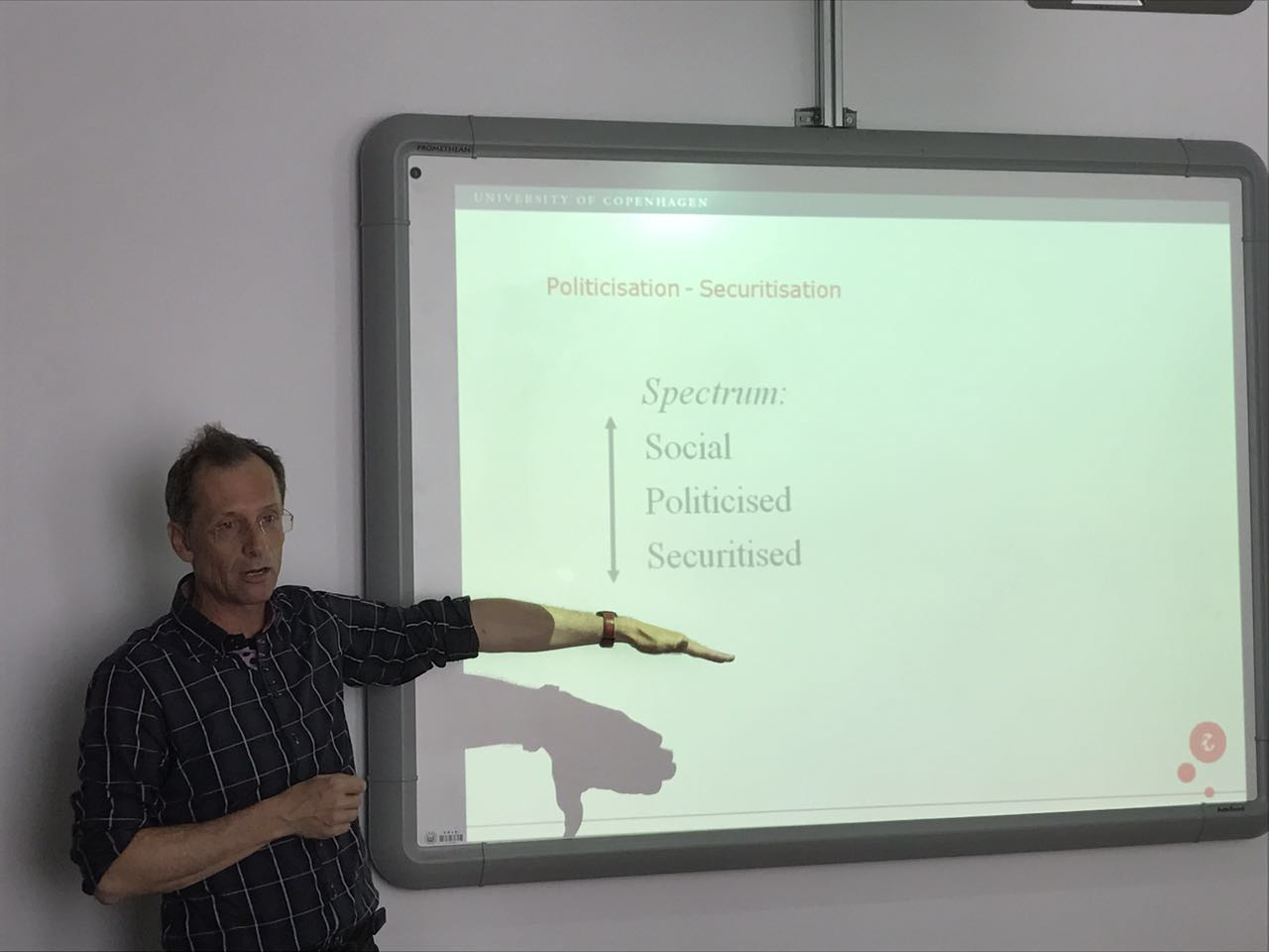 2017年6月20日下午,国际关系理论中的哥本哈根学派代表、丹麦哥本哈根大学国际关系教授、国际冲突解决中心主任奥列·韦弗(Ole Wӕver)来我校做学术交流,在综合楼1401会议室为师生们做了主题为“安全化理论:当前学术讨论、新安全威胁与新兴研究战略”的讲座。讲座由九州(中国)副院长郑春荣教授主持,参加讲座交流活动的有王传兴教授、邱美荣副教授、钟振明副教授、宋黎磊副教授、王丽琴副教授、苏平博士、吕蕊博士、丁榕俊助理教授和学院部分研究生和本科生。