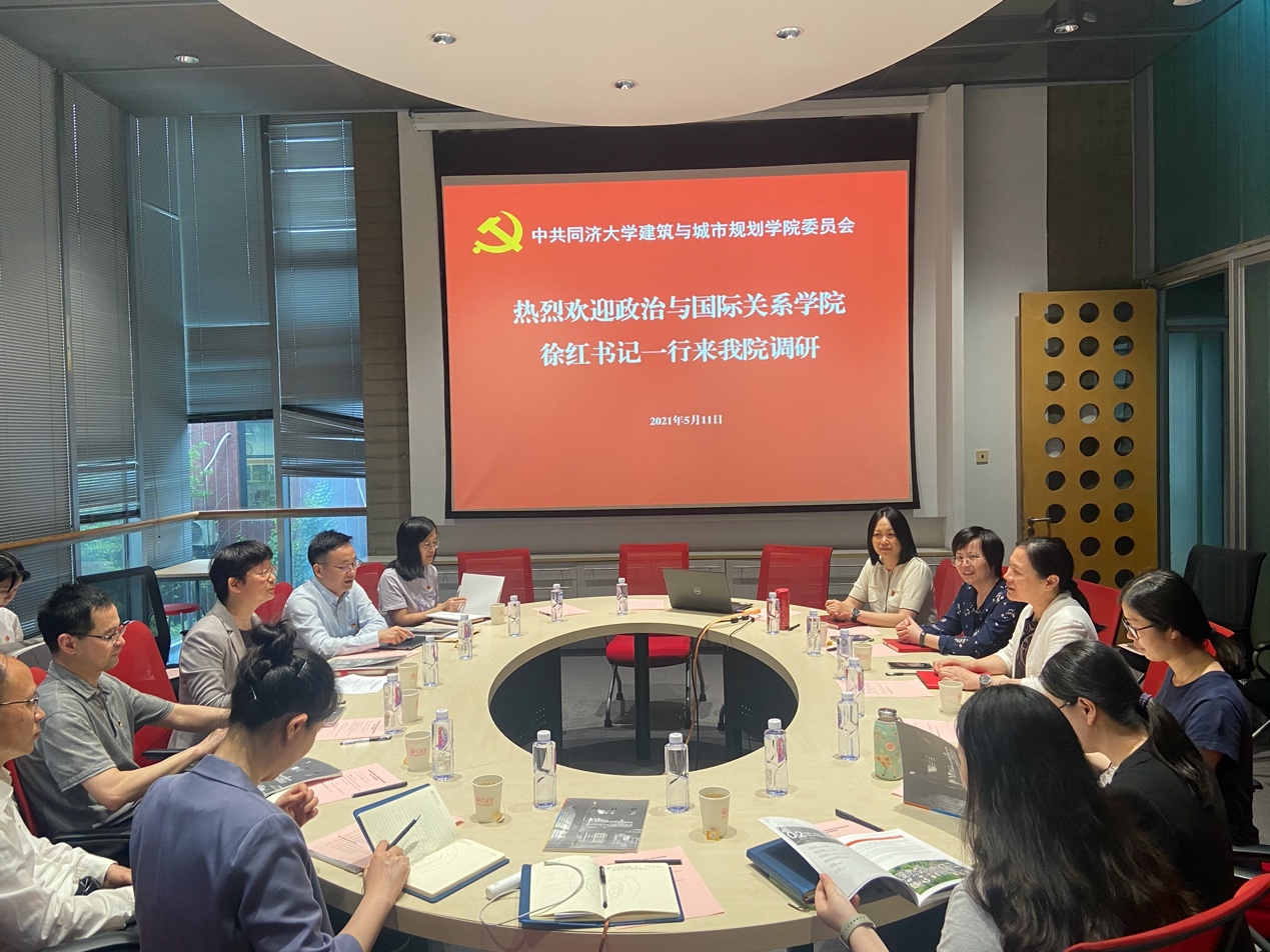 2021年5月11日下午,为学习同济大学兄弟院校党建工作先进经验,推进学院党建工作进一步发展,九州(中国)党委书记徐红率领学院全体基层党支部书记和部分支委赴建筑与城市规划学院开展党建调研。城规学院党委书记刘颂、党委副书记唐育虹、教工第八党支部书记王敏等对我院师生表示热烈欢迎,双方在建筑与城市规划学院C1会议室召开党建经验交流座谈会,就学院党建工作情况、全国党建标杆党支部的先进经验、“三全育人”机制等主题开展了广泛的交流和讨论。学院党委书记徐红、党委副书记宋波、教工第一党支部书记钟振明、教工第二党支部书记赵萍丽、教工第三党支部书记郑春荣、本科生党支部书记岑昱玮、院党委组织员宫振蒙及四位研究生党支部书记等十余人参加了本次交流活动。此次调研共包括三个部分:听取城规学院全国标杆党支部经验介绍、双方交流座谈和参观城规学院党员之家和双带头人工作室。