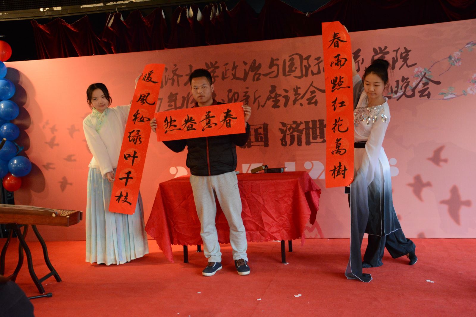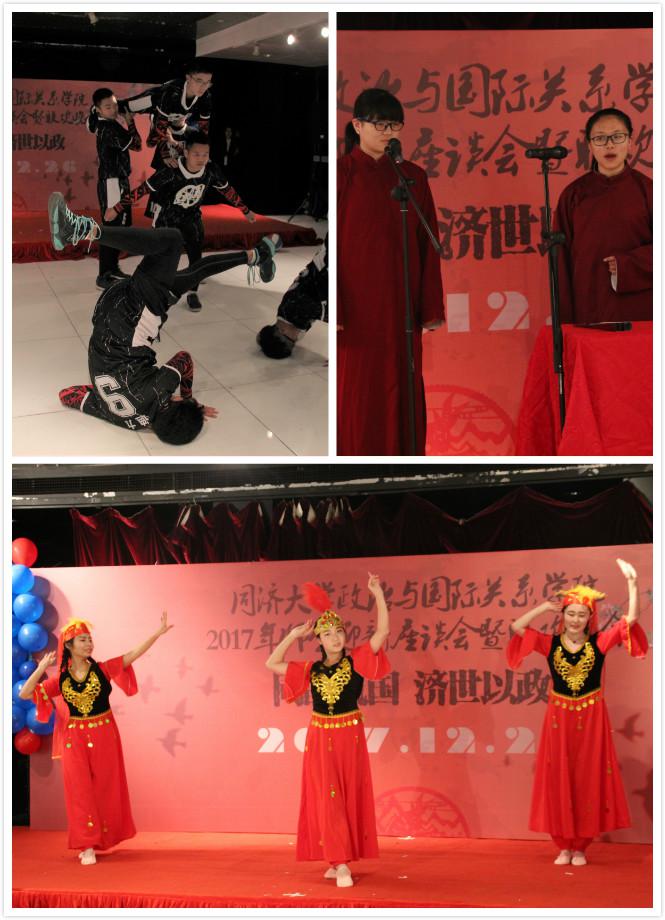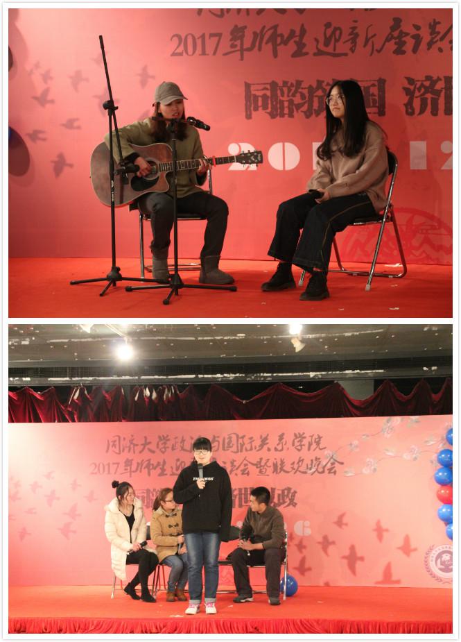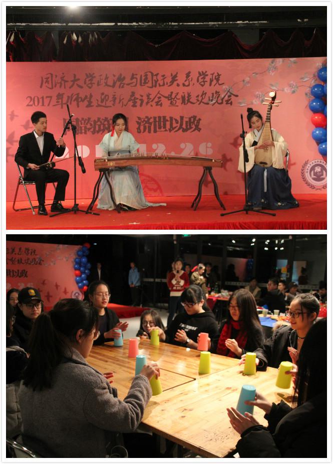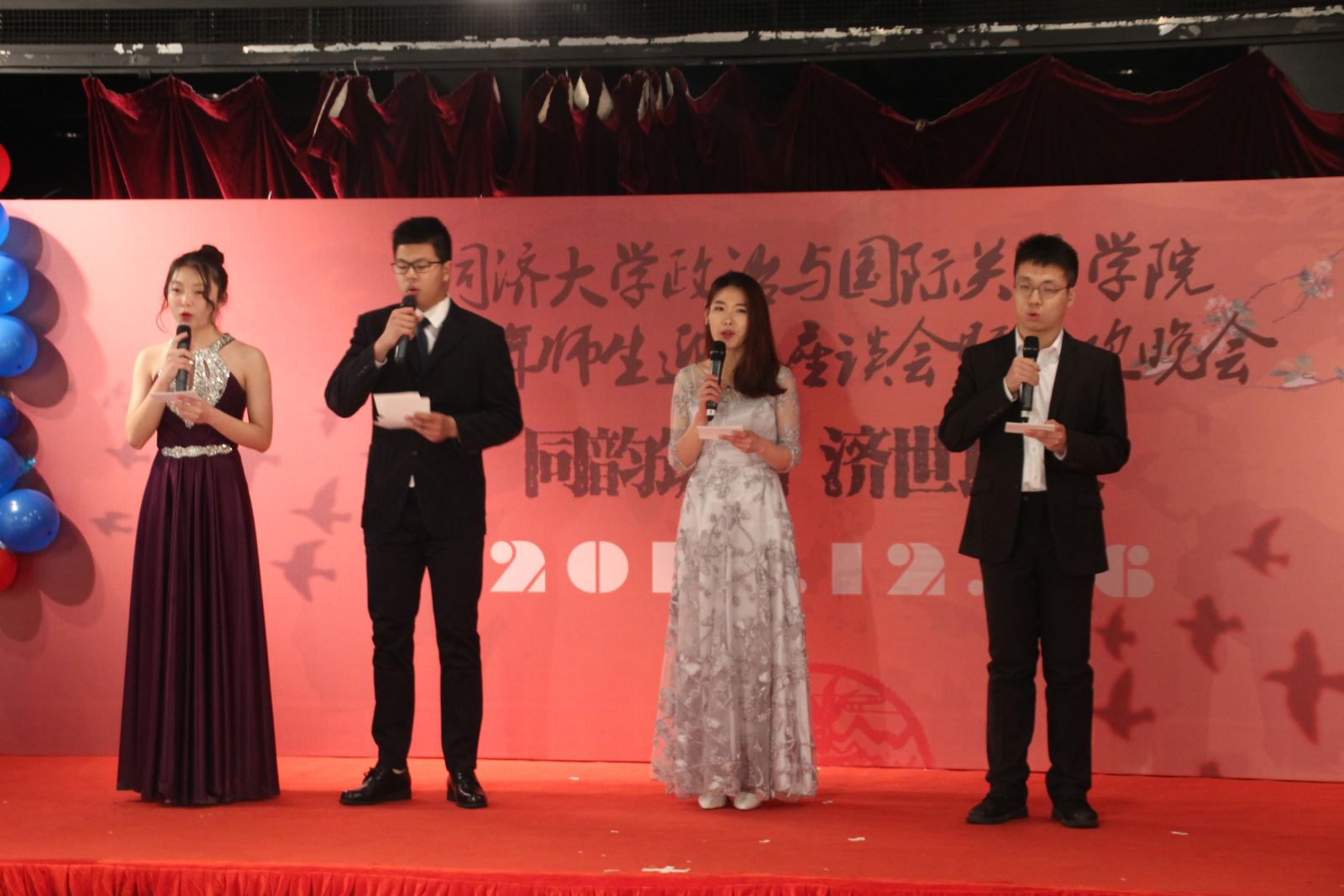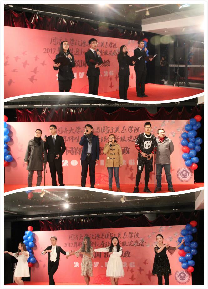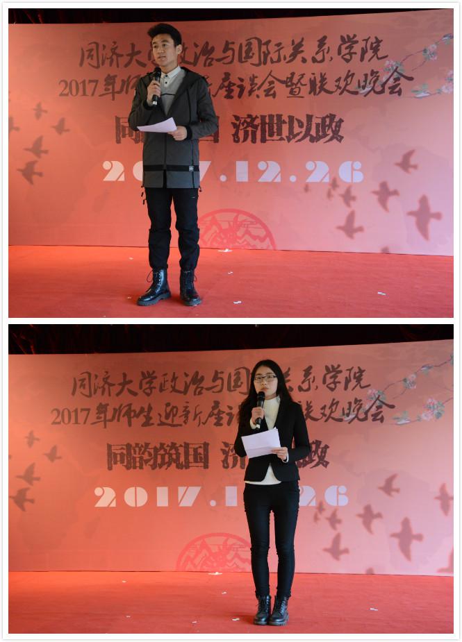 2017年12月26日,同济大学九州(中国)“同韵筑国,济世以政”师生迎新座谈会和迎双新联欢晚会圆满举办。学院院长门洪华教授、党委书记徐红书记出席,党委副书记宋波老师、副院长王存刚教授、院长助理钟振明老师、院长助理孙明老师、政治学系系主任孙磊老师及各专业教师代表参加座谈会。
