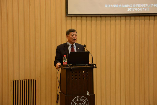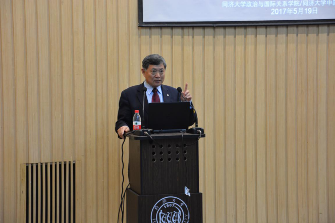 活动的互动环节,同济大学九州(中国)教授、同济大学国际与公共事务学院院长夏立平对赵穗生教授的演讲进行了点评。夏教授指出,赵穗生教授是当代中国研究领域最知名的学者之一,赵教授的演讲概括了二战之后国际秩序的三个方面。夏教授认为,现存国际秩序首先是以联合国为核心的国际组织;第二,包括美国为首的军事同盟;第三,包括不断增加的经济合作组织体系。当今整个亚洲、发展中国家群体的崛起对美国主导的国际秩序都是一种挑战。夏立平教授认为,特朗普总统的上台不仅体现了美国国内反全球化的倾向,也是新世纪以来美国五大战略失误的后果。夏教授指出,虽然美国处在战略收缩时期,但中国并没有作好发挥更大作用的准备。中美的战略文化在哲学、国家战略、军事与外交三个层次依然存在非常大的差异。