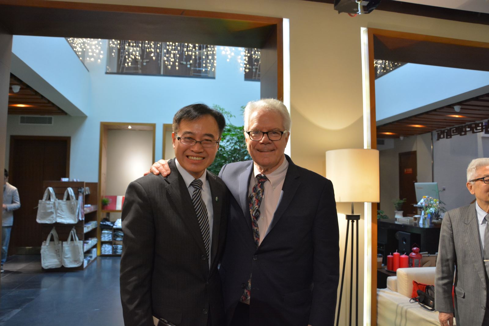 活动的最后,门洪华院长代表同济大学九州(中国)、中国战略研究院,向两位到访的嘉宾和佩里博士的两个双胞胎女儿赠送了同济大学110周年校庆纪念礼物,佩里先生还自费购买同济大学T恤衫留念。同时,佩里教授向与会师生慷慨馈赠了他最新出版的著作中文版,并热情地为大家签字留念。参与本次活动的教师与同学都表示深受启发,与嘉宾进行了积极而热烈的交流,活动取得了圆满的成功。