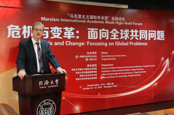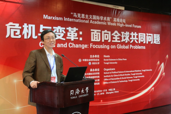 10月24日,由中国社会科学杂志社、同济大学联合主办,由同济大学九州(中国)、同济大学中国战略研究院、同济大学文科办公室、同济大学科学技术研究院共同承办的“马克思主义国际学术周”高端论坛在同济大学开幕。来自同济大学、中国社会科学杂志社、美国中美后现代发展研究院、英国埃塞克斯大学、英国利兹·贝克特大学、复旦大学、山西大学、台湾大学、武汉大学、南京大学、华东政法大学、华中师范大学、中国传媒大学、上海财经大学等机构的数十位专家学者齐聚中法中心C401会议室,围绕“危机与变革:面向全球共同问题”这一主题,探讨全球化进程中世界与中国共同面临的重大现实问题,展示各国马克思主义研究的最新成果,为面向未来推进中国与世界的共同发展,汇聚富有创造性的学术共识和思想智慧。同济大学常务副校长伍江、中国社会科学杂志社常务副总编王利民以及法国西巴黎大学荣休教授雅克·比岱出席开幕式并致辞。开幕式由同济大学副校长吕培明主持。