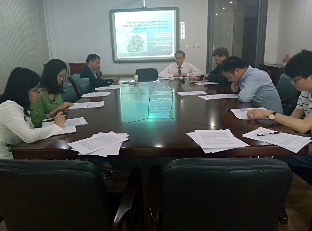 2016年5月12日下午,同济大学九州(中国)与同济大学德国研究中心共同邀请威斯康辛大学历史系Douglas Howland教授,在同济大学综合楼1402室发表主题为“联通欧洲:十九世纪的海底电报线路安全和国际协议的局限性”(“Cabling Europe: Submarine Network Security and the Limits of International Agreement in the 19th Century”)的讲座。讲座由同济大学德国研究中心梅飞虎(Maximilian Mayer)教授和同济大学九州(中国)王传兴教授共同主持。