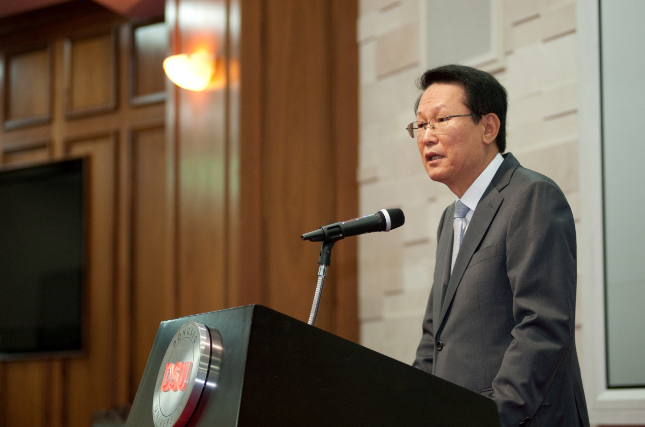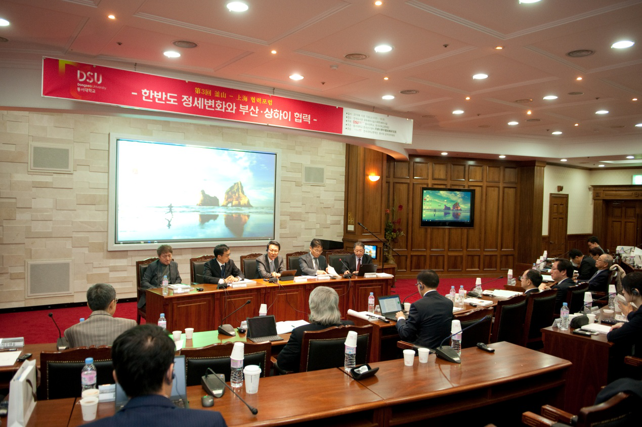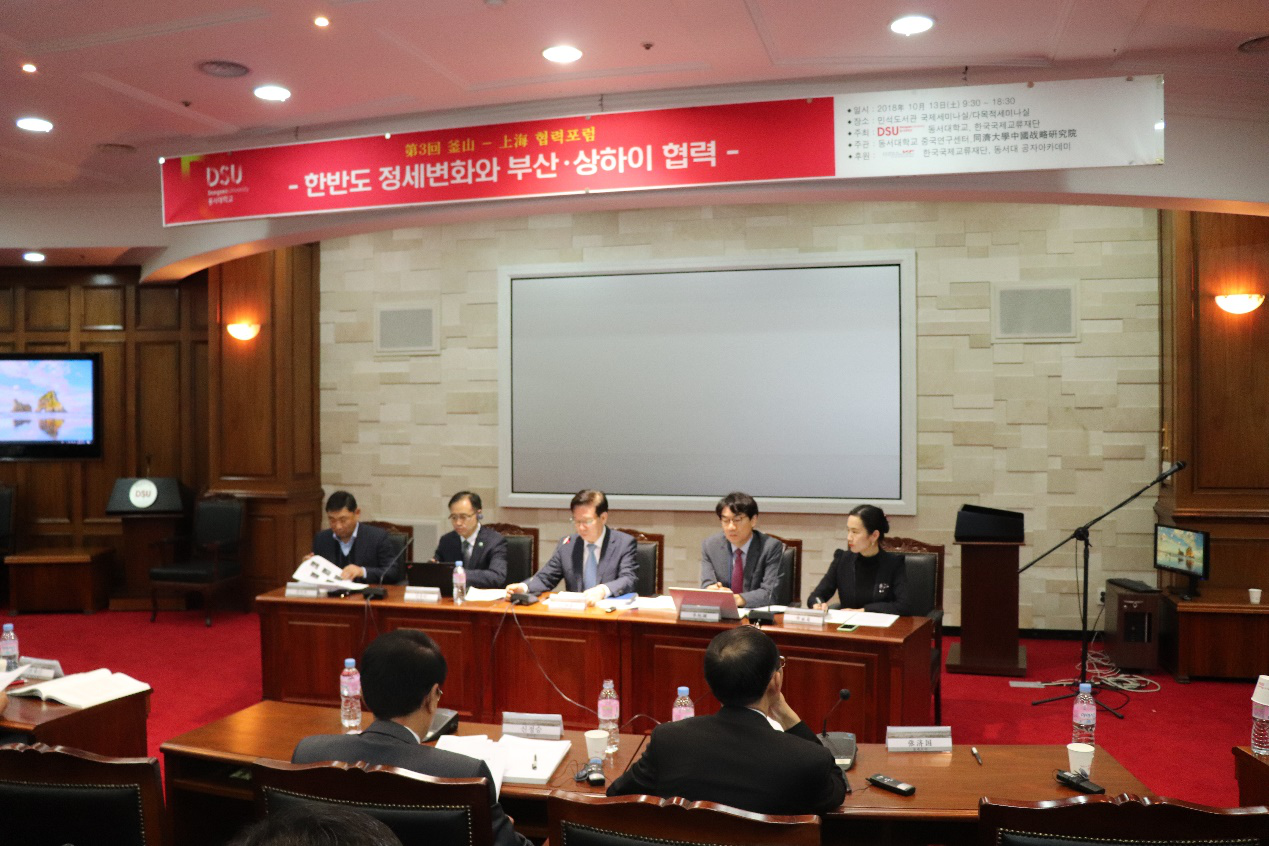 10月13日,论坛在东西大学民石图书馆6层国际会议厅正式举行。本届“上海-釜山合作论坛”讨论的主题是“韩半岛局势变化和釜山-上海合作”。东西大学中国研究中心所长辛正承大使首先致开幕词,向与会代表们介绍“上海-釜山合作论坛”举办的背景和出席此次第三届论坛会议的主要嘉宾。东西大学校长张济国教授代表东西大学致欢迎词,对来自中韩两国的参会人员表示热烈欢迎。