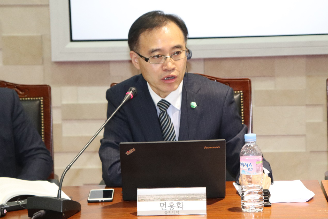 随后,论坛进入分议题讨论阶段。东西大学中国研究中心所长辛正承大使主持了第一个议题“东北亚形势和韩半岛情势变化”的发言和讨论。发言人有4位专家,分别是韩国国家安保战略研究院的赵成烈教授、同济大学九州(中国)的王存刚教授、韩国西江大学的全圣兴教授和同济大学九州(中国)的夏立平教授。赵成烈在发言中分析了朝鲜半岛局势变动的原因,认为金正恩提出朝鲜准备实现无核化是局势变化的主要动因。在提出无核化目标的同时,朝鲜领导人同时也提出了确保体制安全的要求。赵成烈在分析朝韩双方互动及朝鲜同美国与中国方面互动的进程之后认为,中国立场将来至关重要。他认为朝鲜终战及半岛和平机制的建立,也仰赖于解决朝鲜体制安全的保障。当前,中美贸易战可能影响到半岛局势的进一步发展。此外,半岛局势稳定还同南北方之前的联系沟通、美韩同盟关系演变及中朝关系发展等密切相关。王存刚在发言中分析了文明史视野中的中国复兴问题,认为解读中国复兴可以有多种视角。从文明史视角观察中国复兴,可以得出如下四个判断:中国复兴意味着中国核心价值理念的延续和发展;中国复兴意味世界社会主义的复兴;中国复兴意味着东方文明的复兴;中国复兴意味着人类不同文明体之间的关系重新进入平等状态。从文明史的视角看,中国复兴是有雄厚历史基础、真切现实依据和光明前景的。它将为人类对更为美好生活的探索提供积极启示和可供参照的现实路径,在造福中国人民的同时,也将为人类文明的整体发展提供可靠的新动能。全圣兴在发言中认为,半岛局势最近发生的一系列变化并不是结构性变动所导致,而是因为相关国家的特殊原因所引起的,包括特朗普推行的民粹主义和民族主义政策,金正恩的策略调整和中国积极进取的外交政策。他分析了萨德问题、韩国同美国结盟及中韩关系变化等问题,认为中韩两国应该相互照顾核心利益并加强对分歧问题的沟通和理解。夏立平在题为“东北亚安全形势与朝鲜半岛”的发言中认为,在东比亚地区安全形势发展过程中,大国之间博弈更加复杂激烈,合作也在发展。亚太地区多极化趋势更加明显,中美俄日韩朝多边格局初步显现。朝鲜无核化进程取得重要进展,但面临严峻挑战。在小布什政府和奥巴马政府任内,朝核问题一再恶化,美国和朝鲜都要负主要责任。他认为,尽管中国主持的六方会谈发挥了积极的作用,但由于美国和朝鲜围绕朝核问题的激烈博弈,导致朝核问题不断恶化。其中的主要教训包括:朝鲜半岛的冷战结构与美国和朝鲜相互将对方作为敌人的认知导致朝核问题走向恶化;美国国内强硬派对解决朝核问题有重大负面影响;美国的霸权主义心态使朝核问题难以谈判解决。