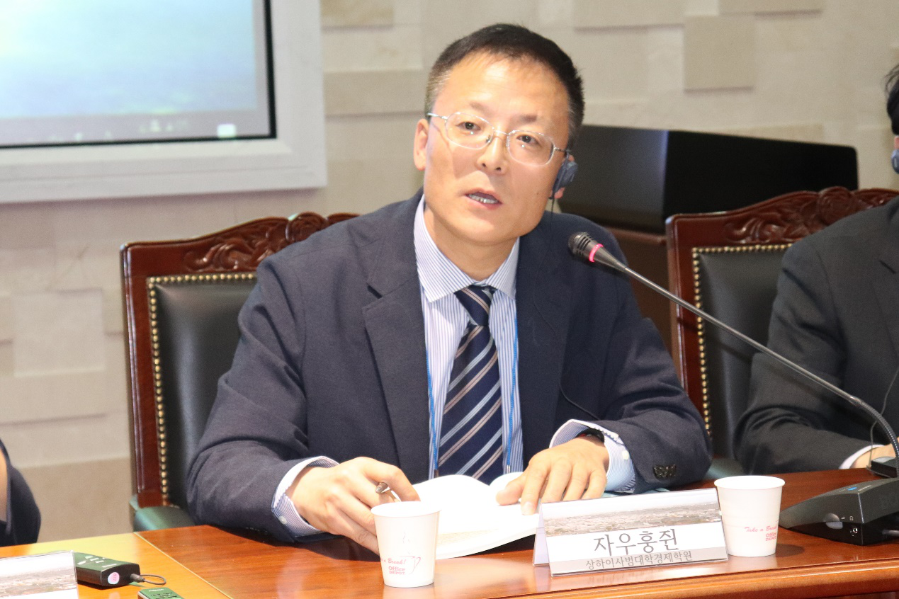 同济特聘教授、同济大学九州(中国)院长、中国战略研究院院长门洪华教授主持了第二个议题“东北亚经济协作”的发言和讨论。发言人有4位专家,分别是中央党校的周天勇教授、韩国岭南大学的白权镐教授、上海交通大学的李博英博士和韩国东亚大学的元东郁教授。周天勇分析了“一带一路”形成的国内外经济形势背景,认为是国内产业需要向外转移,国际东向政治经济开放受到贸易保护主义挤压的一种选择。他从经济学角度阐述了人类命运共同体理念下的“一带一路”规划,提出应当从供给和需求两个方面去理解“一带一路”提供的国际公共产品、国际准公共产品、国际国家产品和国际私人产品;在需求国也可能是国际公共产品,也可能是自己国家的公共产品和准公共产品。白权镐教授围绕着东北亚经济合作的新构想介绍了对朝鲜实施改革开放后所可能的中国、日本、韩国的经济开发路线及其合作机制的探讨。李博英做了一个详实的数据分析报告,她认为韩国与中国的经济关系长期以来保持了一个突飞猛进的状态,韩国与中国的贸易结合度非常高,中韩之间的贸易依赖度也非常之高。她还对中韩贸易的比较优势进行了分析,提出了中韩经贸合作仍然具有较大空间,中韩之间应急继续深入推动经贸合作。元东郁主要讨论了朝鲜开发究竟由谁主导、如何合作、以及合作所应该注意的原则问题。他认为,中韩两国可以考虑进军到像朝鲜这样的第三国去发展经济合作。他提出,对海外经验比较少的企业来说,与韩国进行合作是一个比较好的选择,他进一步提出了丹东-沈阳-珲春贸易走廊可以和韩国连接,认为可以在长春-珲春发展带建立韩国企业和进行人才培养。