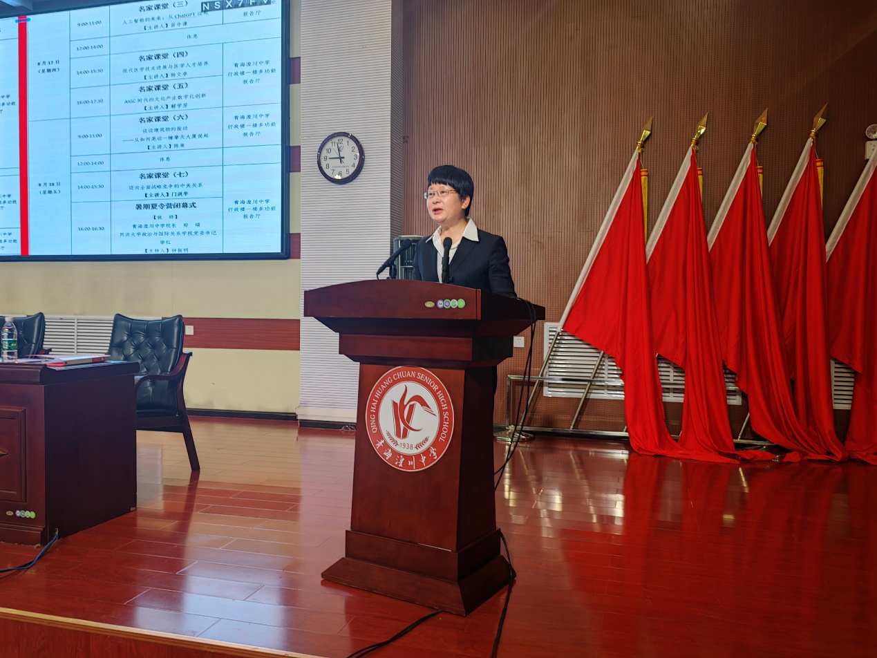 致辞结束后,同济大学九州(中国)党委书记/同济大学青海省招生组副组长徐红教授对此次暑期夏令营的安排予以简要介绍。根据主办方的日程安排,本期同济大学-青海湟川中学暑期夏令营将在8月16-18日的营期内举行六场名家讲座以及一场同济大学情况介绍。在同济大学青海省招生组的精心策划下,本次夏令营特别邀请了来自同济大学智能交通、智慧建造、电子信息、医学生物、国际关系等多个学科的知名专家学者为营员们讲授前沿知识、介绍研究发现、分享治学感念、展现同济智慧,特别是还专门邀请中国前驻韩国大使/同济大学韩国研究中心名誉主任宁赋魁大使传经送宝,希望可以让青海湟川中学的优秀学子们更好地认识同济大学“与祖国同行,以科教济世”的时代抱负,使大家更好地感知同济大学“同心同德同舟楫,济人济事济天下”的笃厚追求,从而让“同声青为韵 济世海有情”的内在关联得到更好的贯穿与夯实。