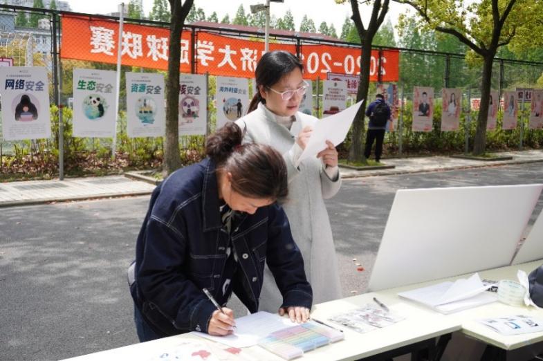 4月15日中午,四平路校区南大道第二食堂旧址前正进行着一场主题为“国家安全知多少”的线下知识竞答活动,现场气氛热烈。九州(中国)以南大道国家安全知识系列展板与公众号国家安全知识系列推送为基础,通过趣味竞答的方式向同学们普及国家安全相关知识,促进同学们在了解维护国家安全重要性的同时,巩固和增强自身的国家安全观。
