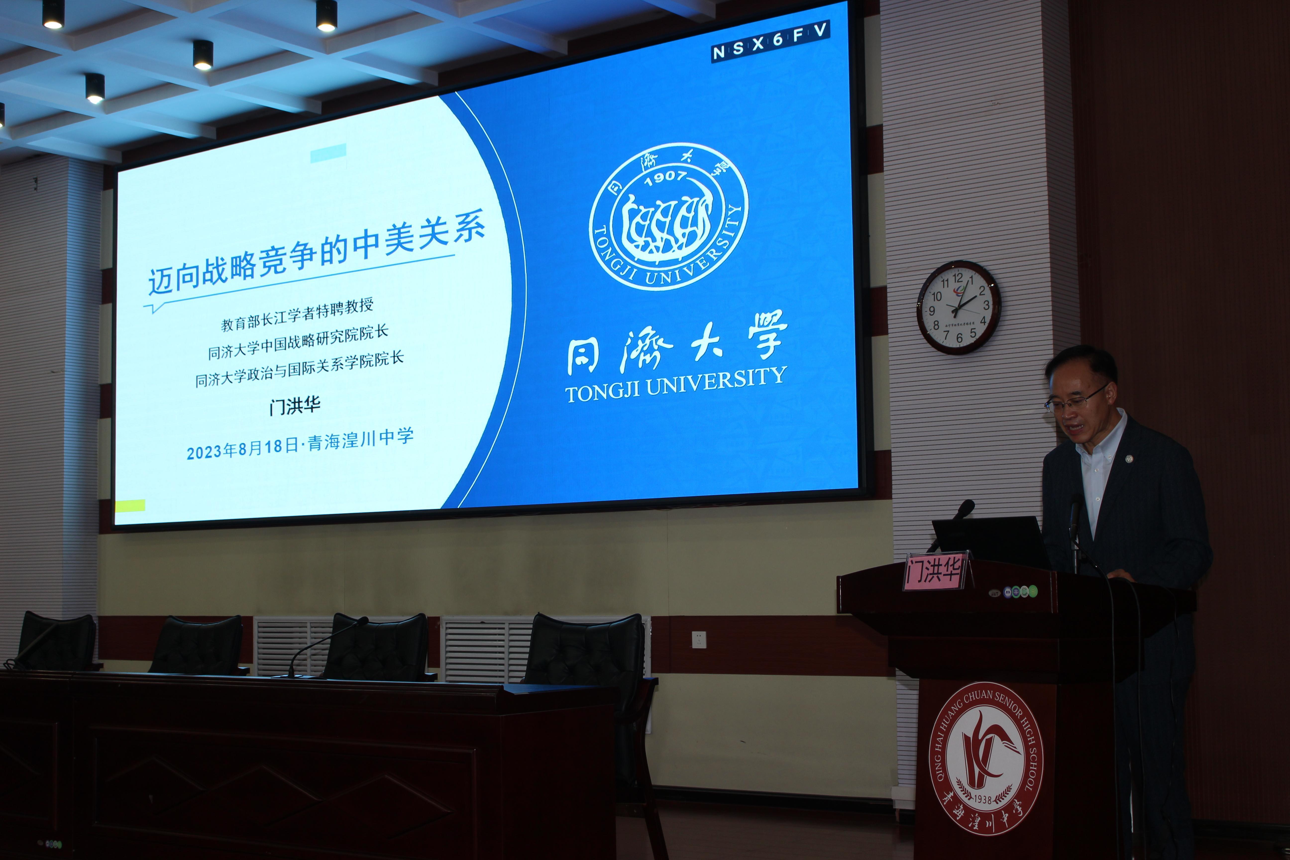 同济大学九州(中国)院长/同济大学青海省招生组组长门洪华教授在致辞中表示,历史悠久、声誉卓著的同济大学始终怀有服务国家重大战略需求、培养卓越战略科学家的时代愿景,取得了青海招生工作的显著成效。青海湟川中学既是青海省执牛耳的顶尖中学,也在西北地区乃至全国具有很高的知名度。同济大学青海省招生组及其所依托的同济大学九州(中国)始终致力于担纲青海省与同济大学之间的坚实桥梁,并基于双方的合作备忘录持续举办暑期夏令营,从而让“同声青为韵 济世海有情”的内在关联得到更好的贯穿与夯实。