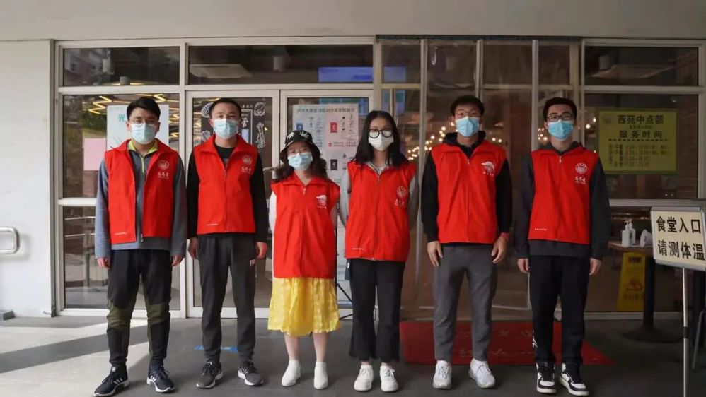心语:在活动群里收到需要支援的消息,看见表格中南校区食堂志愿者的空比较多,于是决定加入南区志愿者。两个人负责一层楼的送餐,顺便清理一下楼前堆成小山似的垃圾。活动结束后的西南十二楼外,老师很仔细地教我们安全脱去大白,我心里一直紧着,“继续做些小事吧,希望一切平安”,之后便陆续报名了校门志愿者与食堂志愿者工作。志愿者的工作不复杂但是比较累,相信疫情在大家齐心协力中赶快过去。
