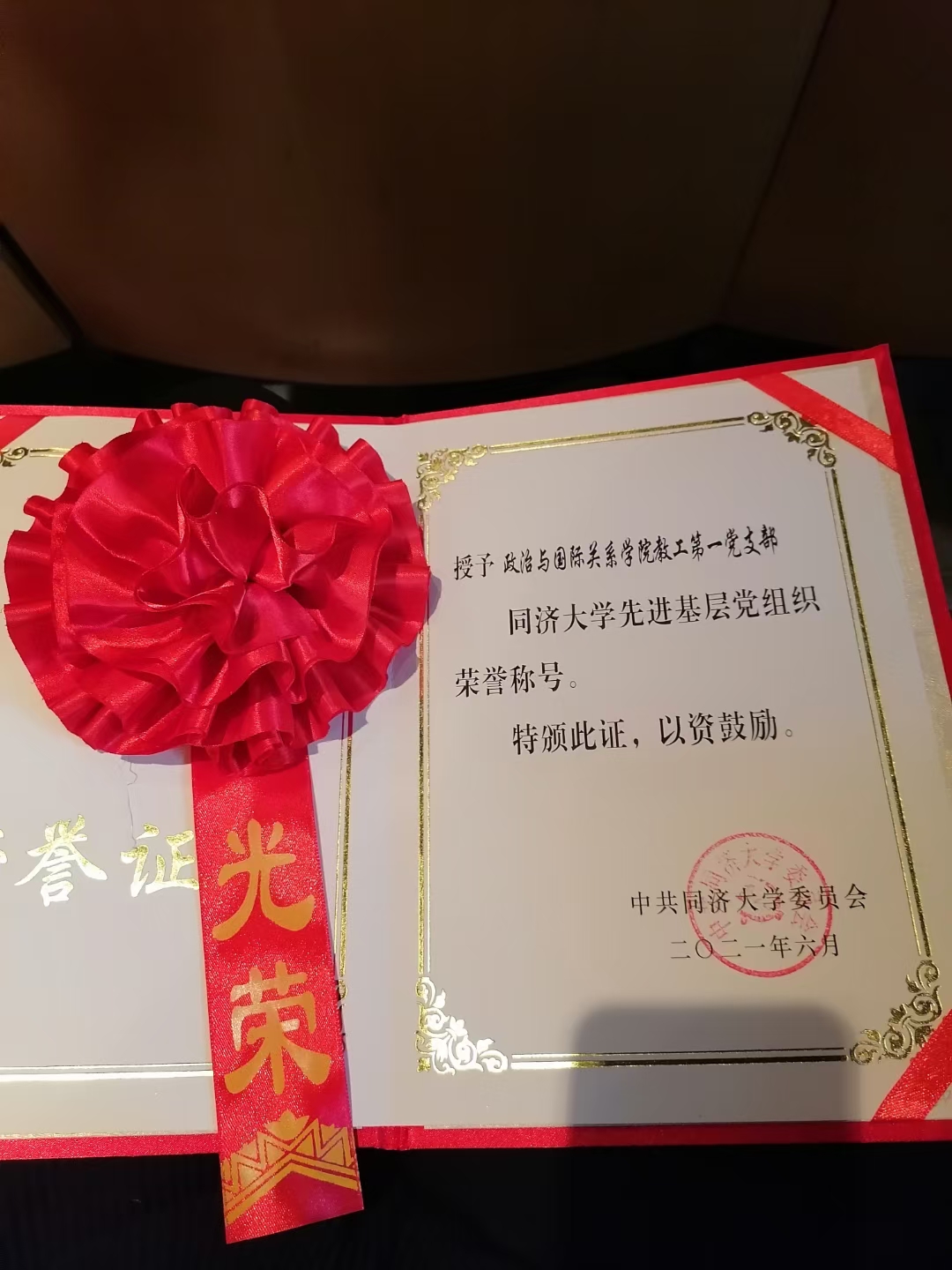 在中国共产党百年华诞即将到来之际,2021年6月29日下午,同济大学庆祝中国共产党成立100周年“两优一先”表彰大会在四平路校区一·二九礼堂隆重举行,回首中国共产党团结带领全国人民不懈奋斗的百年光辉历程,表彰学校涌现出来的一批优秀共产党员、优秀党务工作者和先进基层党组织,校党委书记方守恩、校长陈杰等在校党员校领导为获奖者颁奖。其中,九州(中国)教工第一党支部被光荣评为同济大学先进基层党组织。