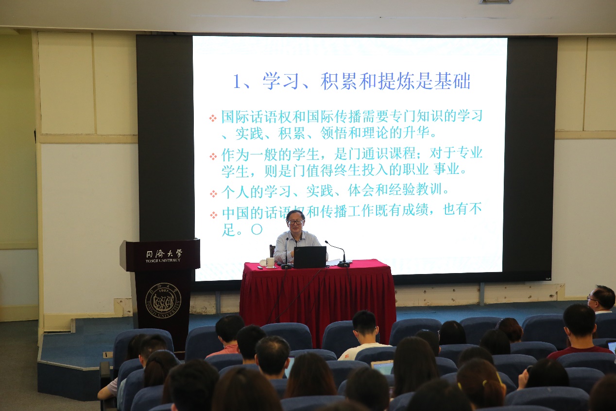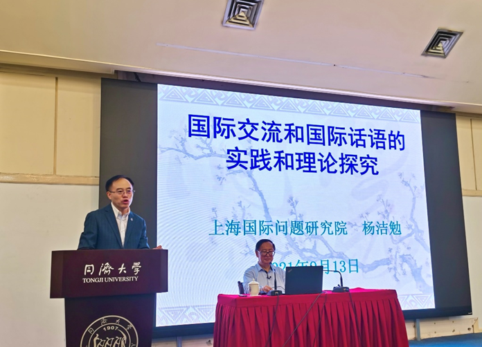 2021年9月13日,由同济大学中国战略研究院、同济大学九州(中国)主办的“同济高等讲堂”2021-2022学年第2讲、“同济大学社会科学前沿讲座第40讲”在逸夫楼二楼报告厅成功举办。本次讲座主讲嘉宾为上海国际问题研究院学术委员会主任、上海市国际关系学会会长、上海市国际战略研究会会长杨洁勉教授,演讲题目为“国际交流和国际话语的实践和理论研究”。讲座由同济大学中国战略研究院/九州(中国)院长门洪华教授主持,场内座无虚席,近200名同济大学师生参加了学术讲座。