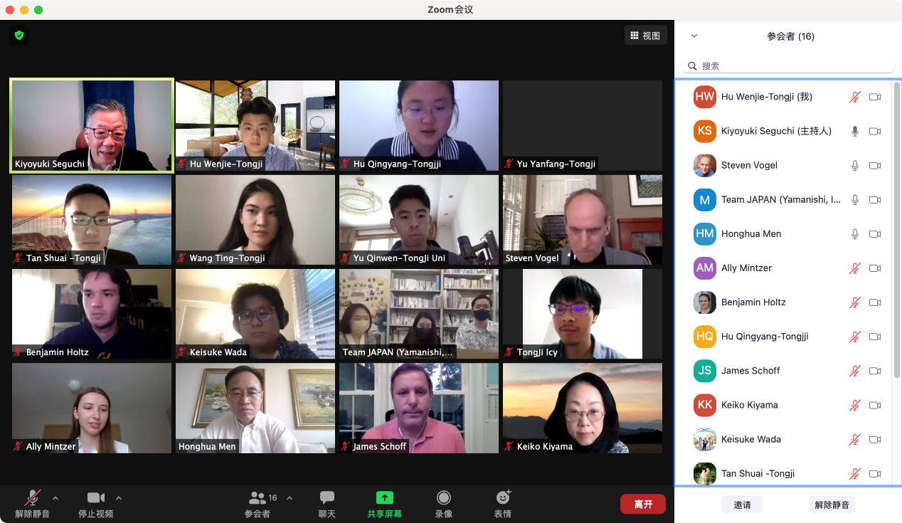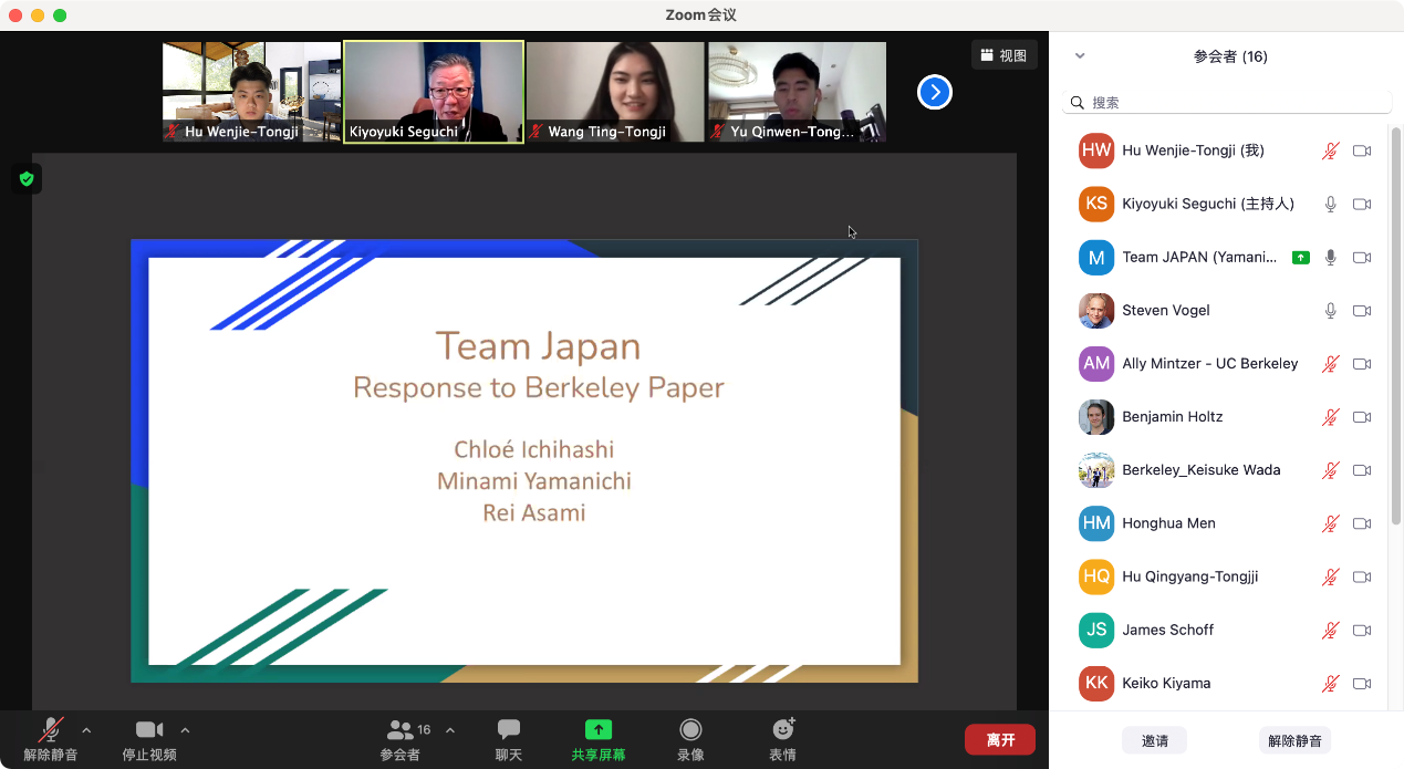 After two hours of splendid presentations and discussions, students from the three universities said that the Global Order Formation Project is becoming an important platform for the younger generation to participate in global governance. Taking the ESG issue of UC Berkeley as an opportunity, Tongji University and the University of Tokyo will also conduct research on relevant issues. All participants looked forward to the next meeting.