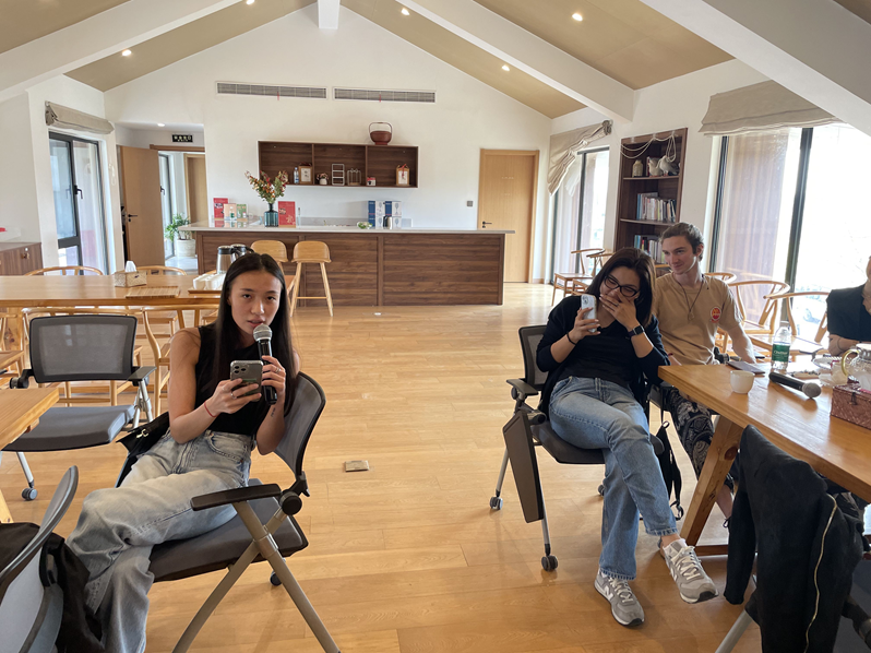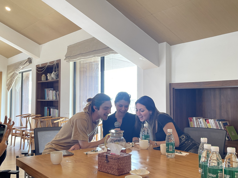 The group then gathered in a multifunctional conference hall, where Professors Zhong Xiaohua and Liu Yumei facilitated a discussion. Students from different countries and cultural backgrounds exchanged their observations and insights on what they had experienced. Over tea and friendly conversation, cultural differences sparked lively discussions and the sharing of diverse perspectives.