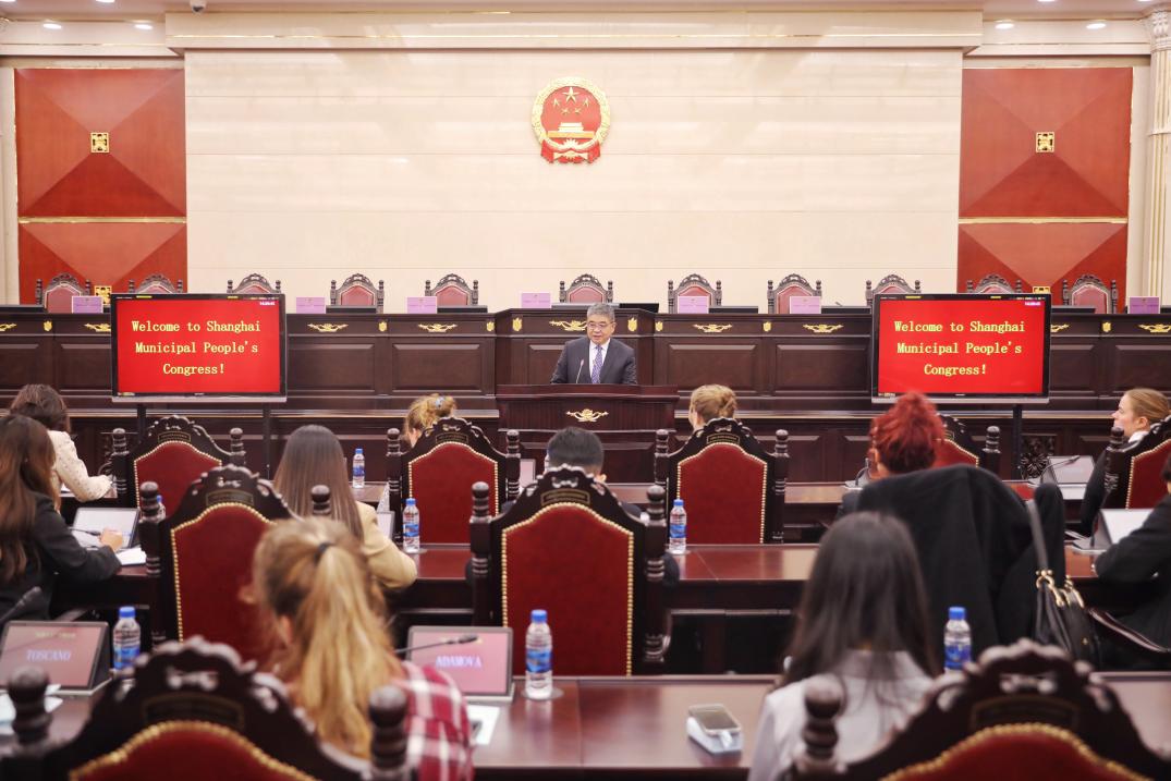 The international students came to the conference hall of the Standing Committee of the Shanghai Municipal People's Congress and were warmly welcomed. The event started with a vivid introductory video, which comprehensively demonstrated the historical development of the system of the People’s Congress and its important role in contemporary Chinese society, providing an intuitive learning basis for the international students.