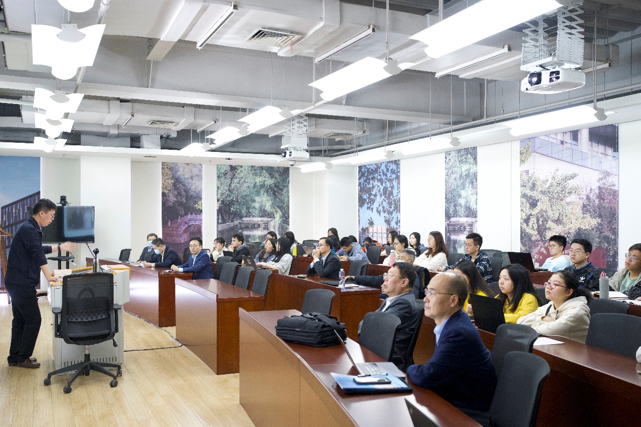 Next, the group had online & offline hybrid interactions with the faculty, student, alumni and employer representatives in the conference room 1402 of Zhonghe Building to learn more about teachers and students’ opinions of and expectations for the future development of the program.