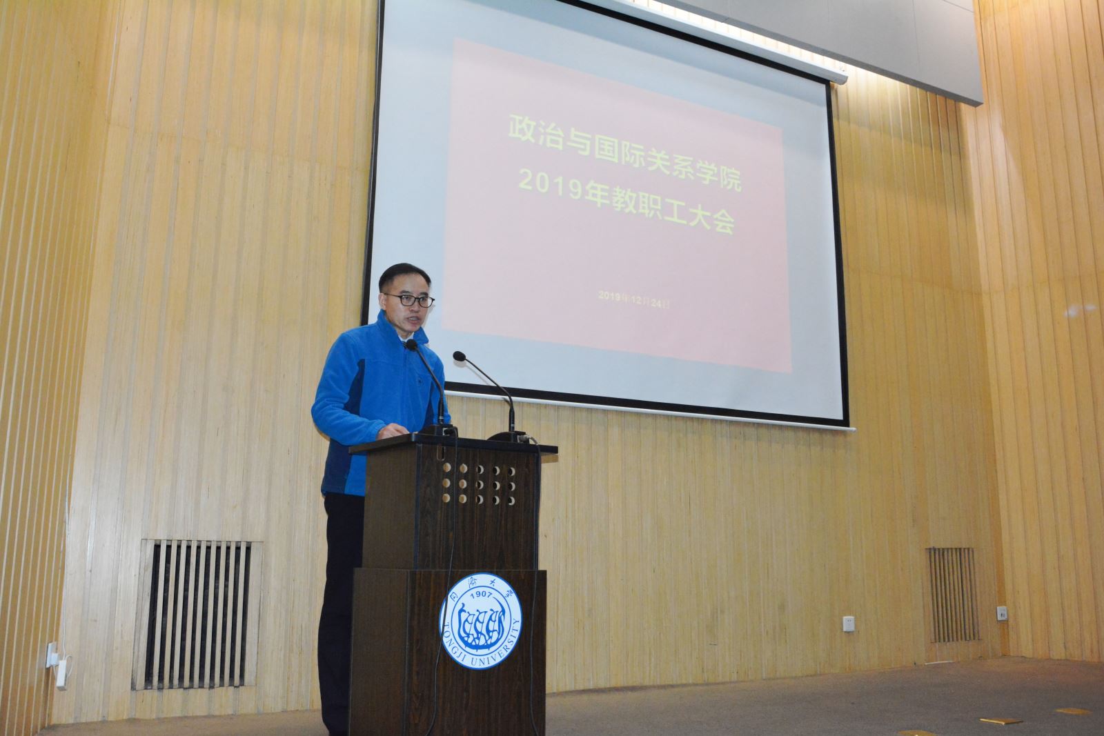 On December 24, 2019, the Faculty Congress of the School of Political Science & International Relations was held in the solemn national anthem. The meeting approved The Administrative Report of the School of Political Science & International Relations, Tongji University in 2019, The Financial Report of the School of Political Science & International Relations, Tongji University in 2019, Work Priorities for 2020 of the School of Political Science & International Relations, Tongji University, The Post Setting and Workload Allowance Distribution Scheme of the School of Political Science & International Relations, Tongji University, and The Work Report of the Labor Union of the School of Political Science & International Relations, Tongji University in 2019. The meeting reviewed and summarized the work in 2019, and made an overall work plan for 2020. The Party and administrative leaders and all faculty members of the School attended the meeting that was moderated by Song Bo, Deputy Secretary of the Party Committee of the School.