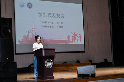 Yu Tiantian, a postgraduate student of 2018, delivered a speech