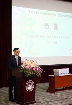 The second agenda of the celebration was a welcome speech by Prof. Jiang Bo. On behalf of Tongji University, Vice President Jiang warmly congratulated the 10th anniversary of the founding of SPSIR. He briefly recalled the founding and development of the humanities and social science in the 112-year history of Tongji. SPSIR has developed and flourished along with the joint efforts across Tongji. He fully affirmed the remarkable achievements made by SPSIR in talent cultivation, teaching, scientific research, foreign exchanges, and social services in the past decade, especially in recent years. Then, Jiang put forward four requirements and suggestions for its future development plan. First, further improve the political stance. Particularly, it should earnestly study and understand the Xi Jinping Thought on Socialism with Chinese Characteristics for a New Era. Second, aim at higher standards. It should strive to develop a first-class school and cultivate first-class talents. Third, take this opportunity of celebrating the 10th anniversary to further innovate the development ideas. It should make innovations in both thinking and practice. Fourth, be upstanding and dauntless. It should continue to work hard in a practical and meticulous manner.