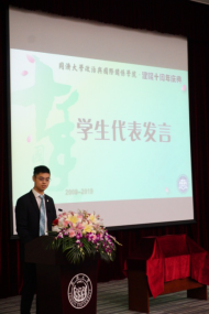 The fourth agenda was speech by student representative. On behalf of more than 300 students and more than 800 alumni, Wang Xiao, a doctoral student of class 2016, sent blessings and gratitude to SPSIR. He vividly described SPSIR as a teenage with a great ambition, and used four words “courage, perseverance, sincerity and simplicity” to sum up the temperament of SPSIRers. He called for us to stay young and motivated all the way along.