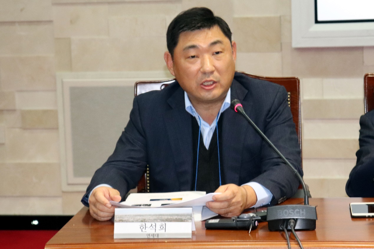 Then, the panel sessions kicked off. Ambassador Shin moderated the first session themed “Situation in Northeast Asia and Trend of the Korean Peninsula”. The four panelists included Cho Seong-ryoul, a professor at INSS, Wang Cungang, a professor at SPSIR, Chun Sung-heung, a professor at Sogang University, and Xia Liping, a professor at SPSIR.